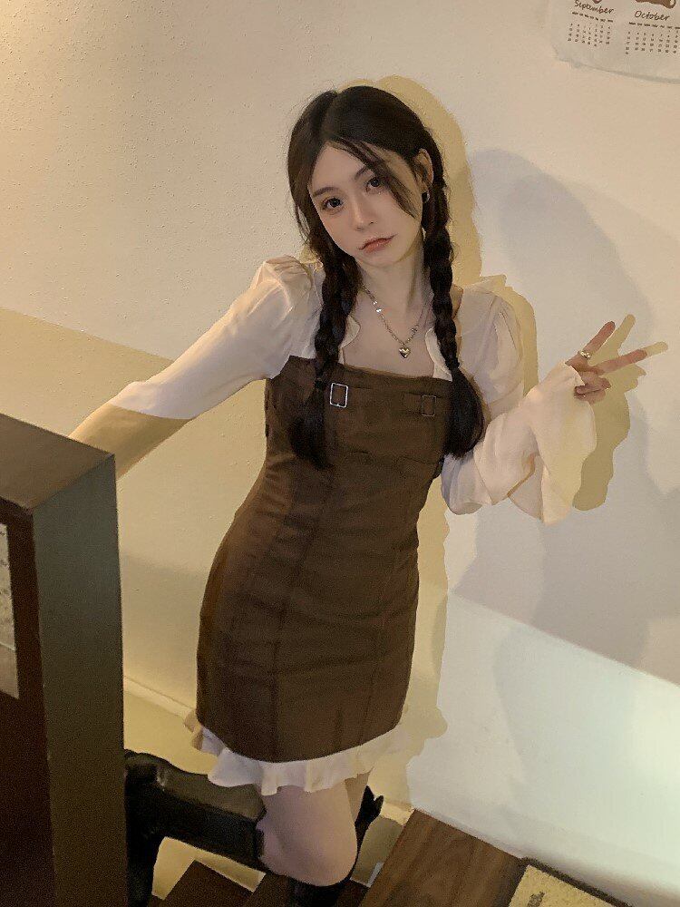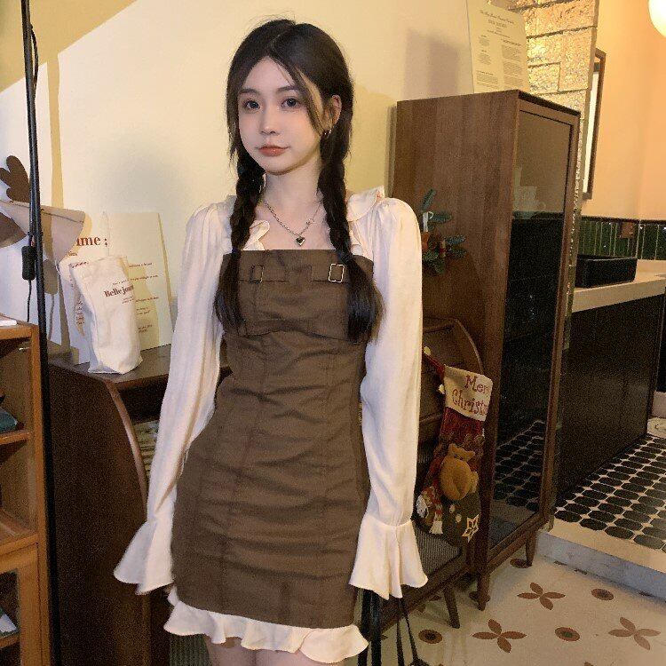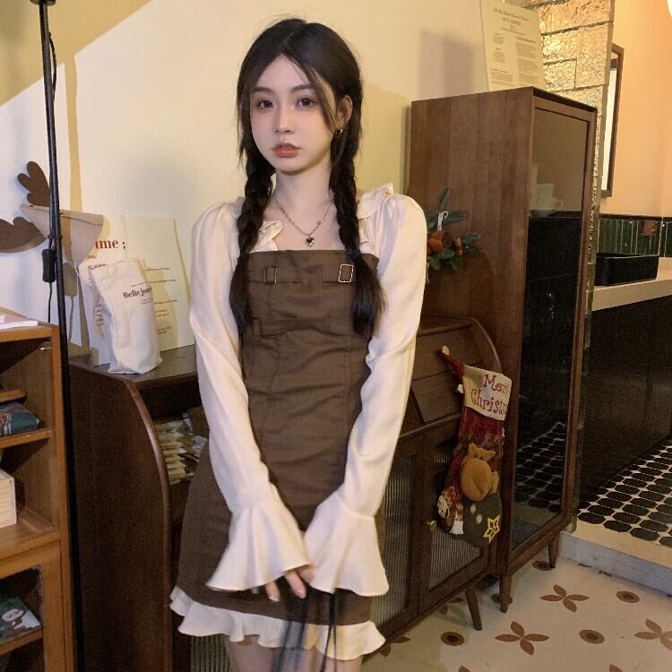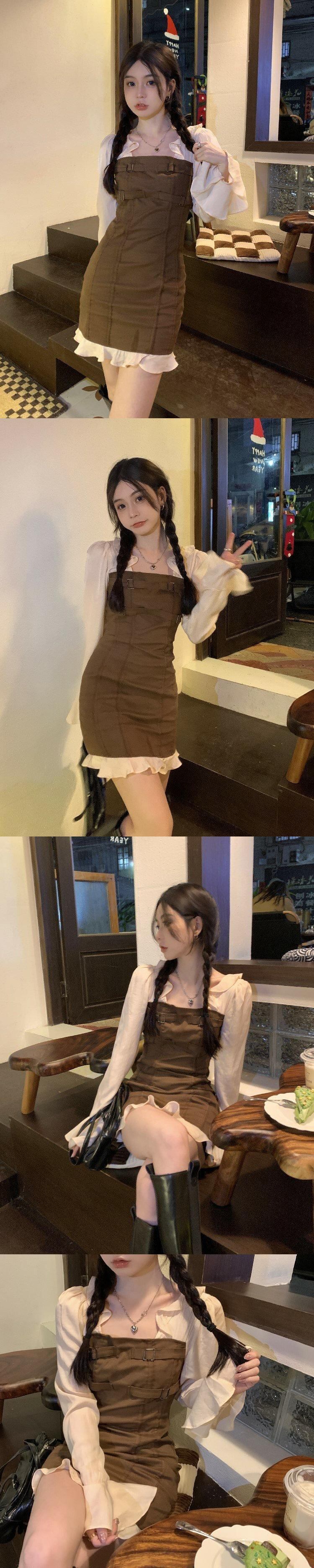 ワンピーススプリング秋物スカート ハイウェストウェスト ロング 春物 オータム ステッチ 長袖 ウエスト ミドル丈 MONROE84299145283