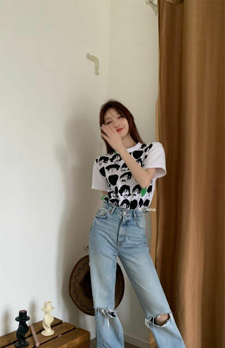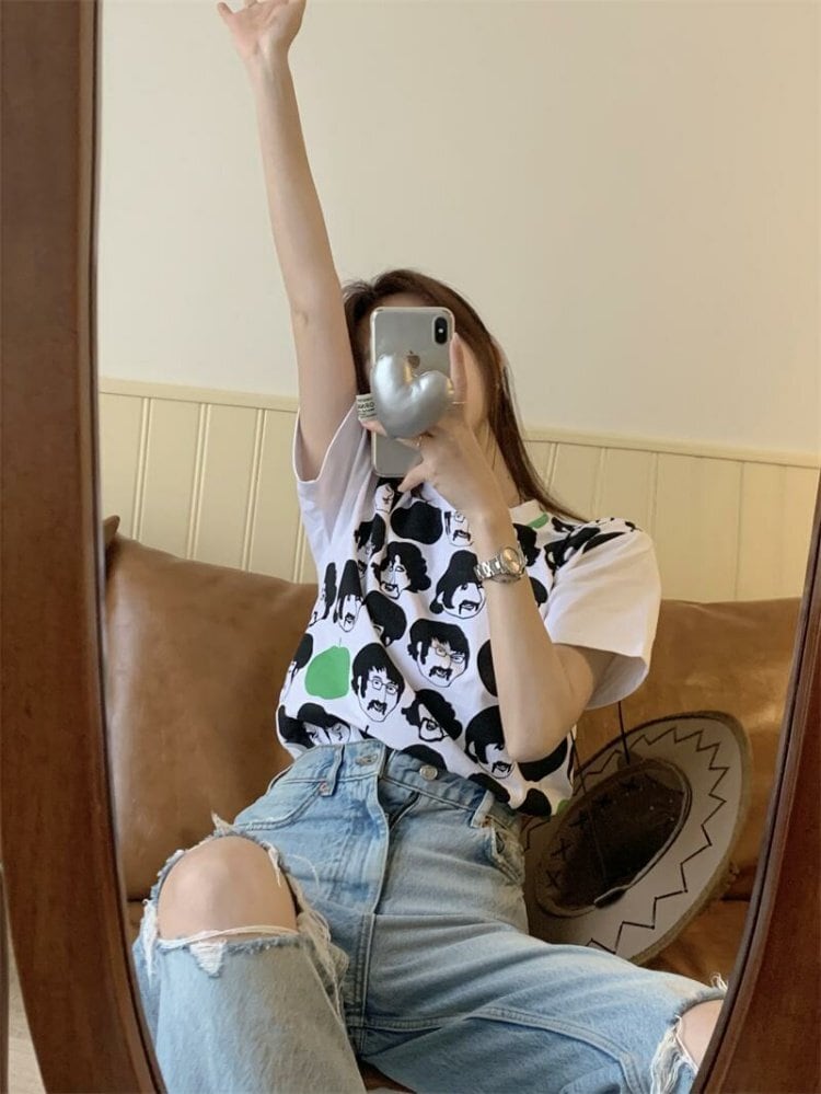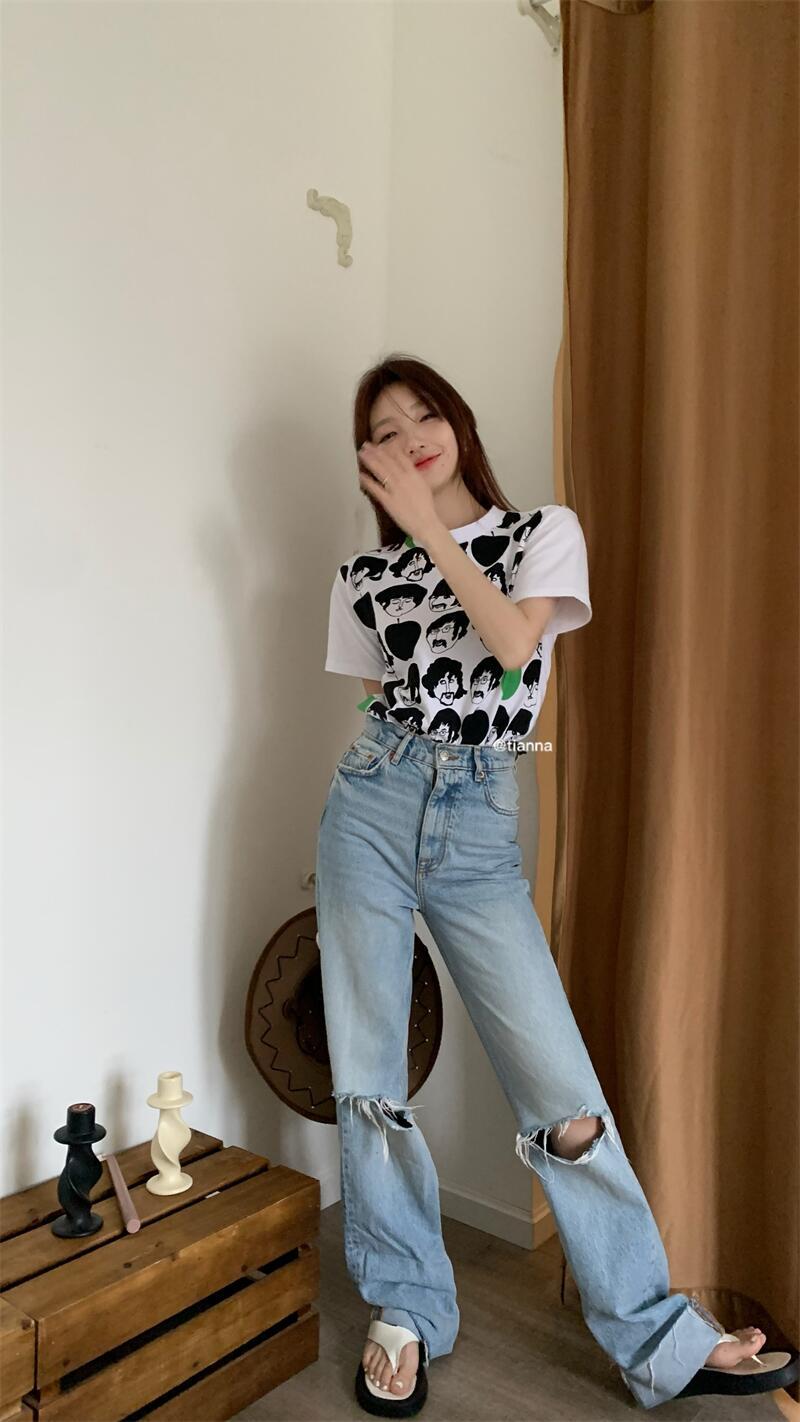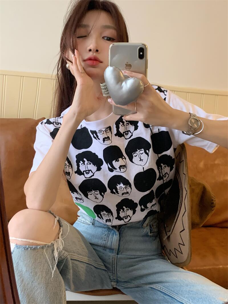 プリントTシャツシャツ スプリング夏服ホワイトルーズ薄手ラウンドネック 春物 夏物 Oネック MONROE92762632085