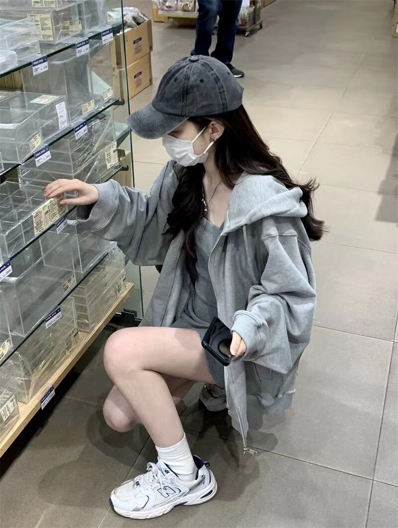 スタイルNEWルーズグレージッパーセーター ジャケット スプリング秋物カジュアルカーディガントップス ロング 春物 オータム 長袖 MONROE13397037022