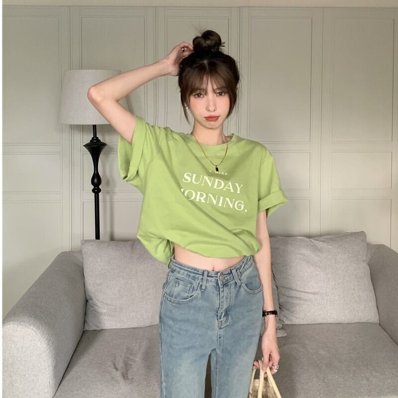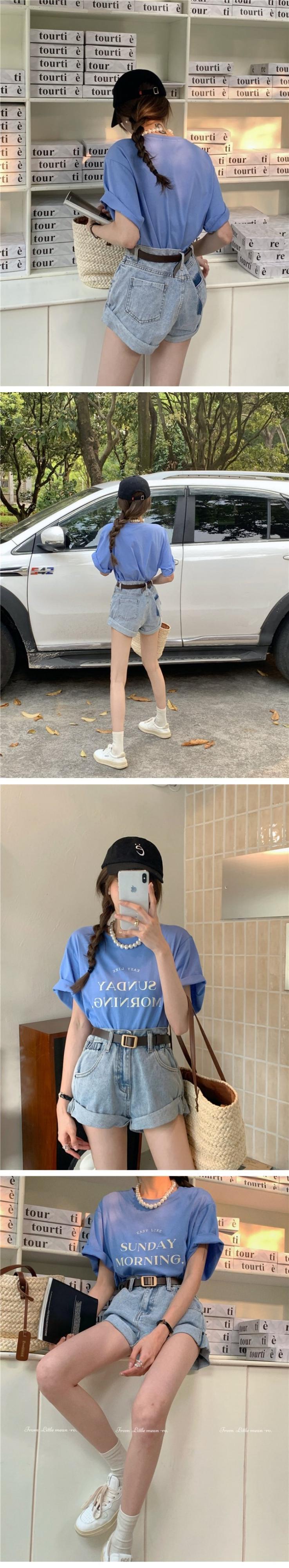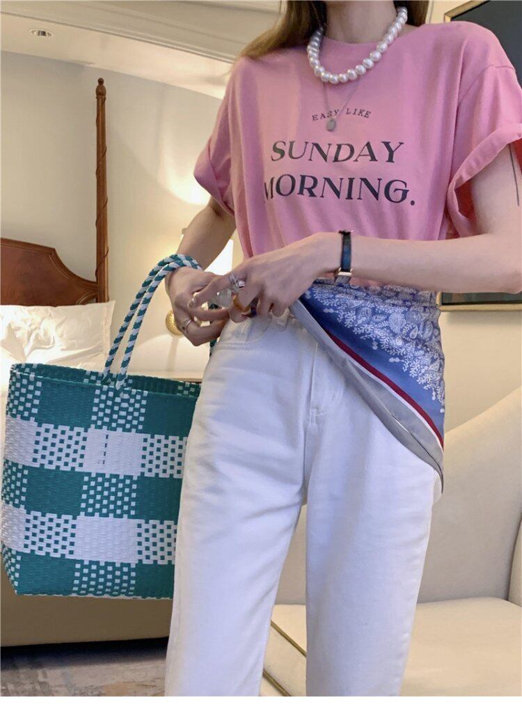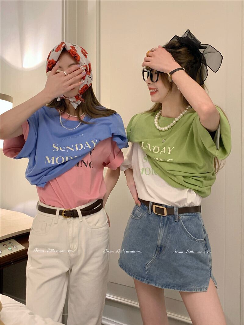 NEW夏服プリントTシャツシャツ ソリッド カラールーズラウンドネックトップス 薄手ゆったり 夏物 Oネック ソリッドカラー MONROE48304474357