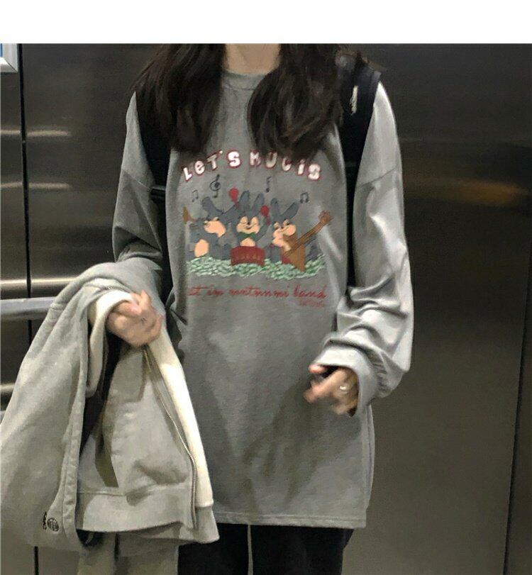 Tシャツスプリング秋物ルーズトップス NEW ロング コットン 春物 オータム 長袖 MONROE89552238310