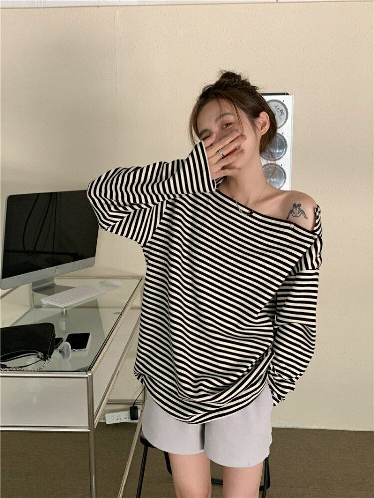 ストライプTシャツスプリングライントップス NEW ロング 春物 長袖 MONROE10955891498