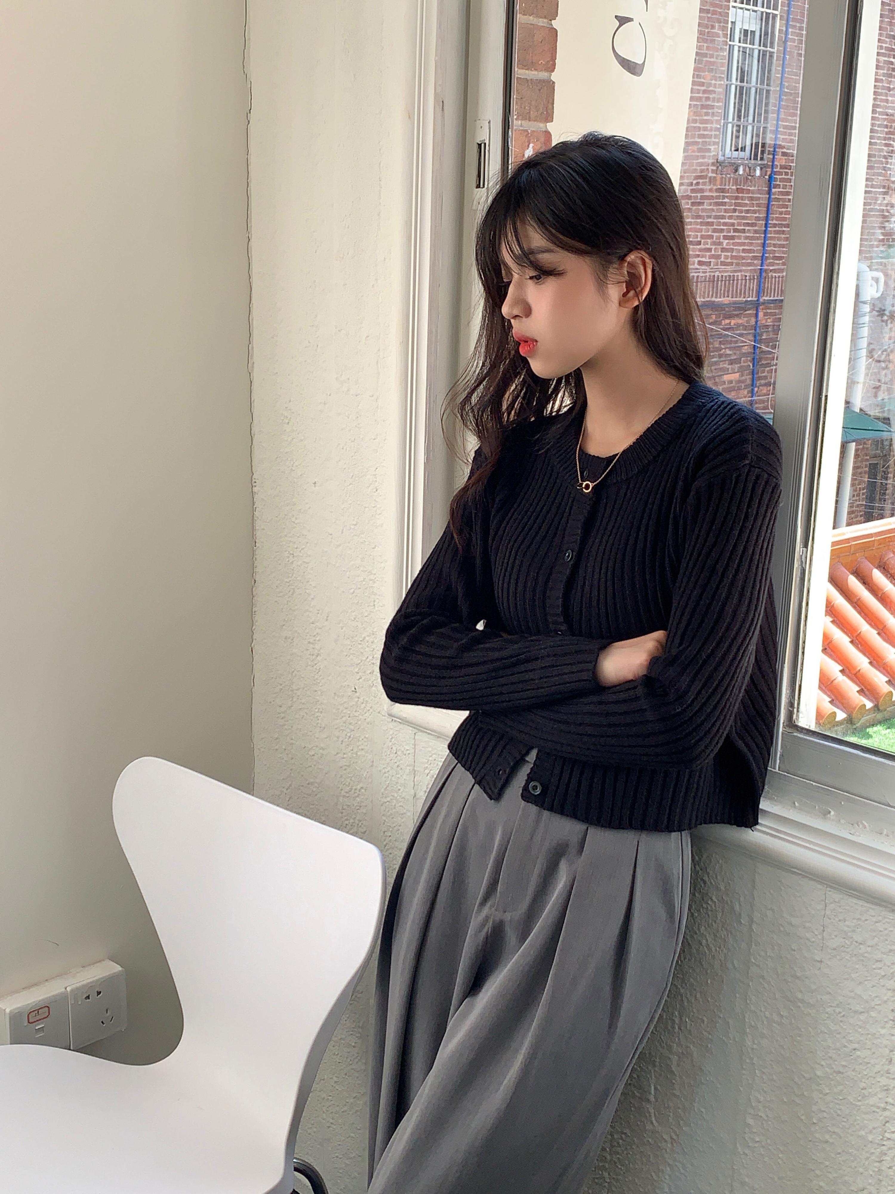 ベージュショート薄手ニットカーディガンスタイルセーター コート スプリング秋物カジュアルトップス 春物 オータム MONROE31406290724