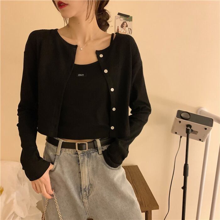 ホワイトニットセーター カーディガンスプリングルーズアウターショートトップス コート ロング 春物 長袖 MONROE38350067800