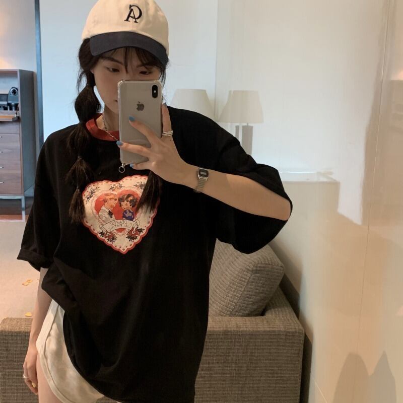 ブラックTシャツ夏服スタンダードルーズトップス NEW レトロ 夏物 MONROE47495410420