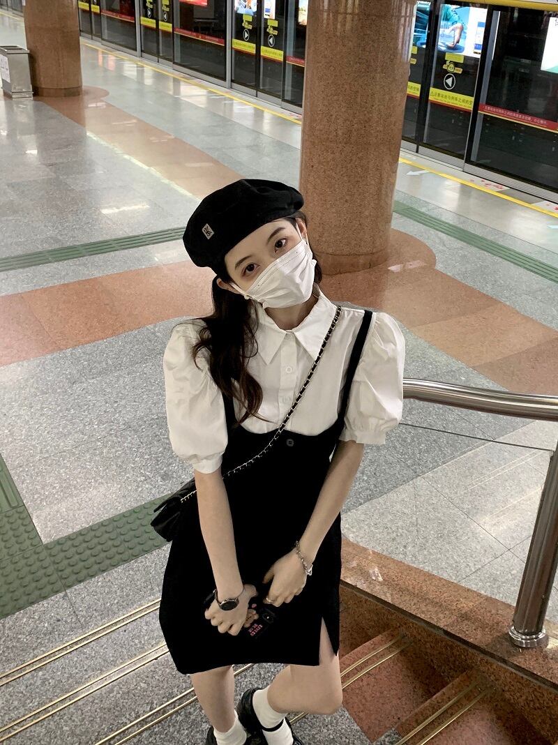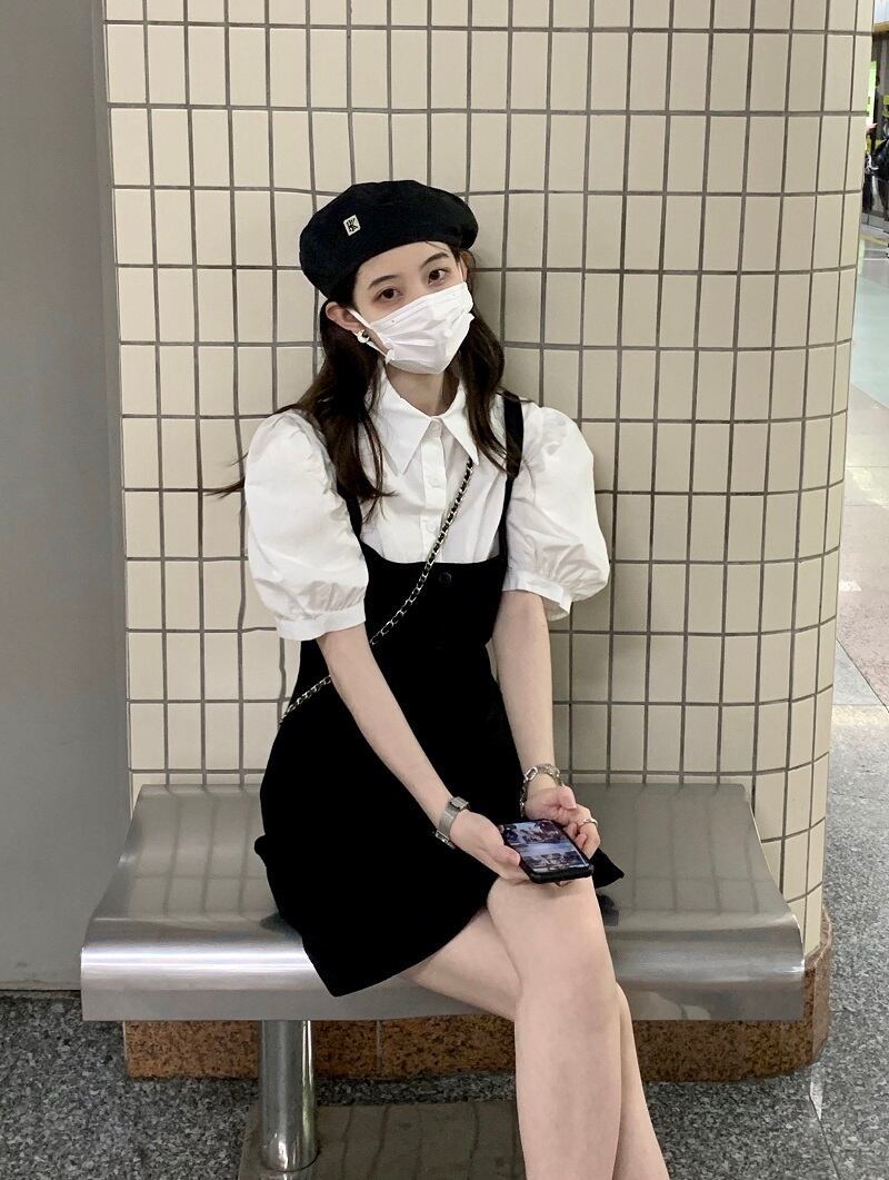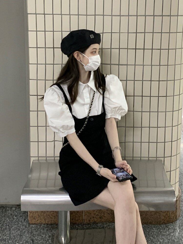 色:白のシャツ,ストラップドレス
