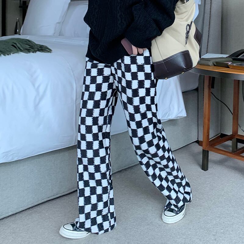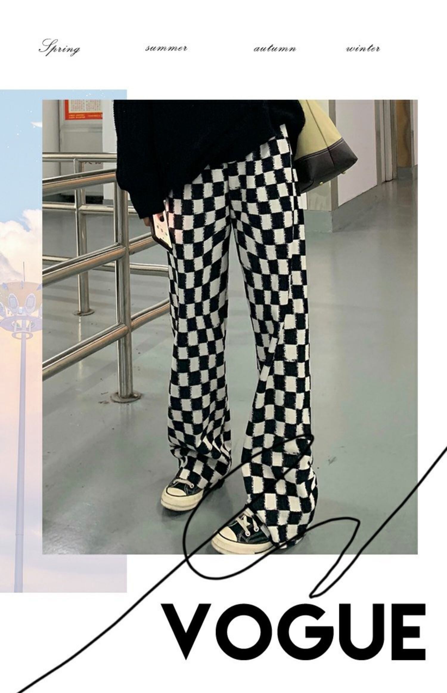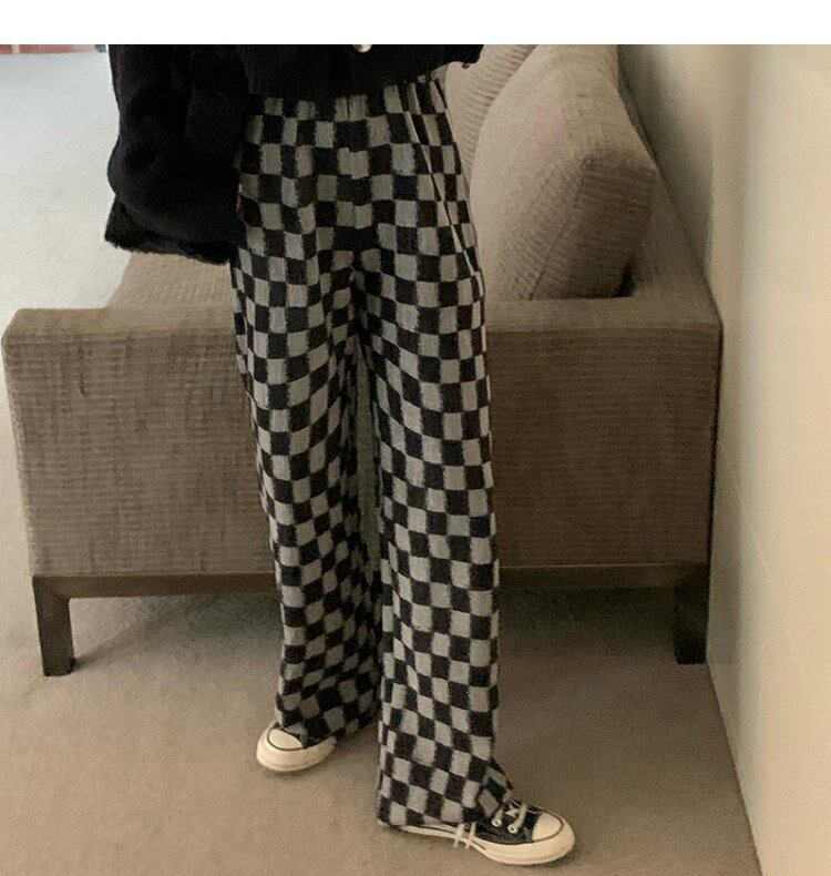 格子柄スタンダード厚みカジュアルパンツ スプリング秋物ハイウェスト薄手 レトロ 春物 オータム ウエスト MONROE26284377470