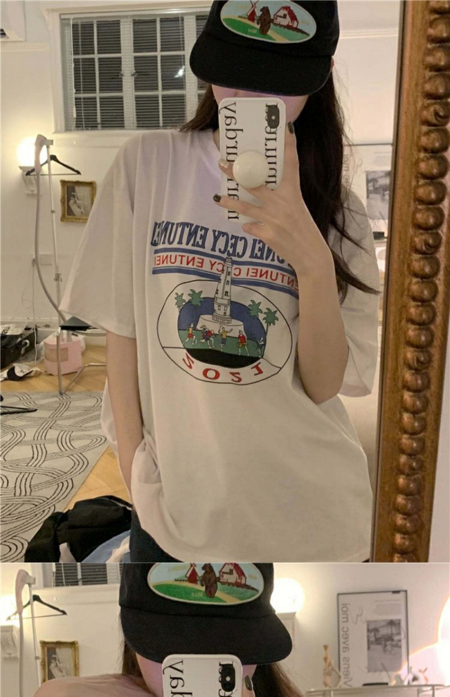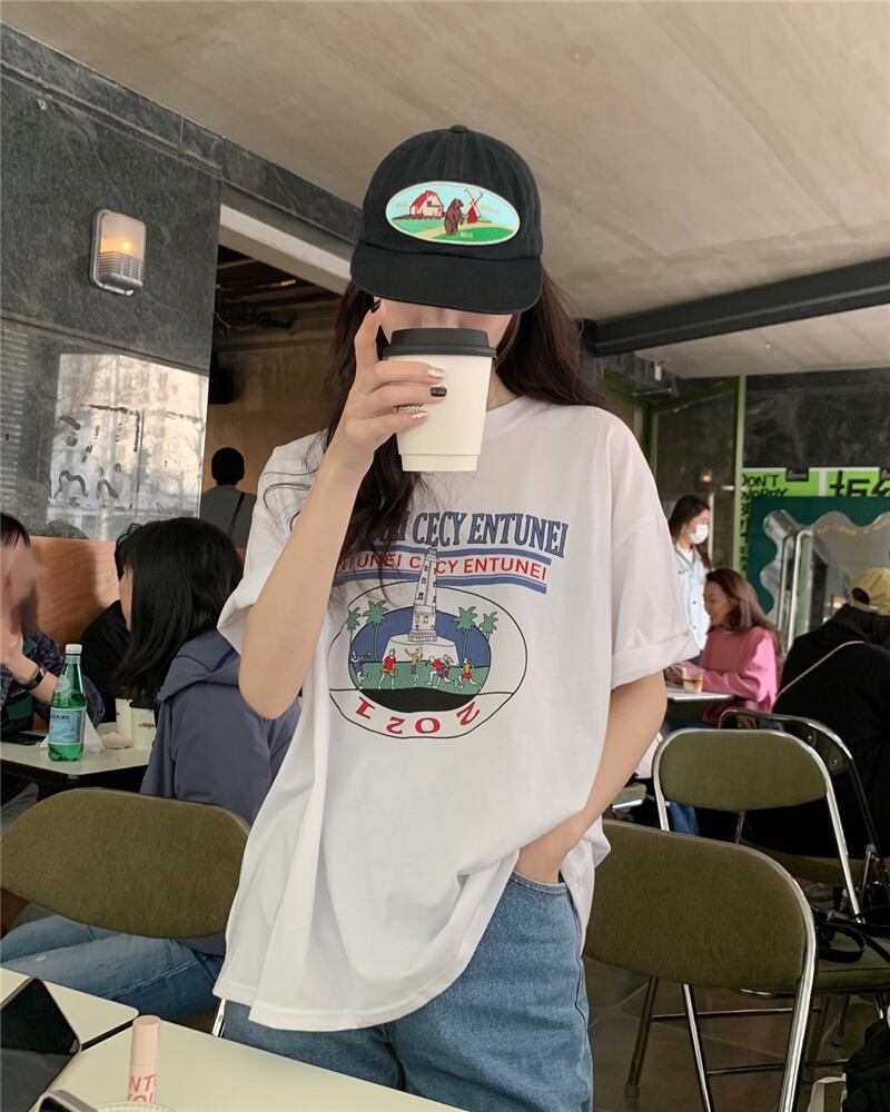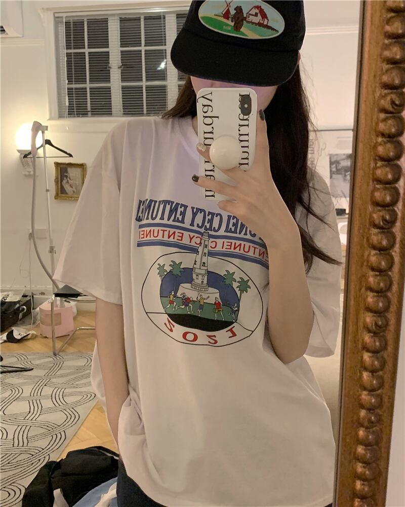 韓国ファッションプリントTシャツシャツ スプリングルーズ薄手トップス ゆったり 春物 スタイル MONROE59746358030