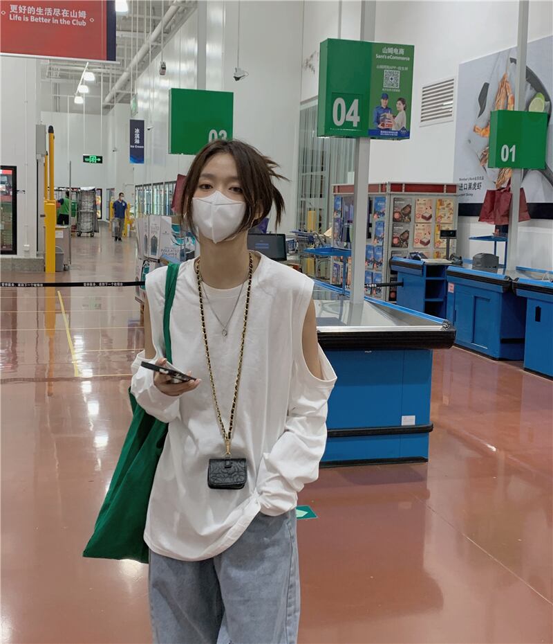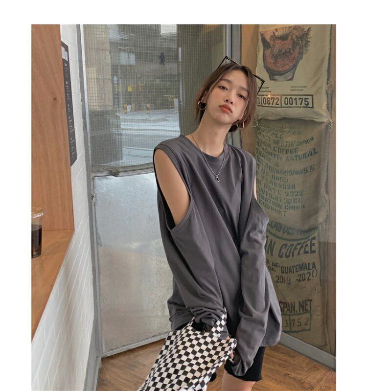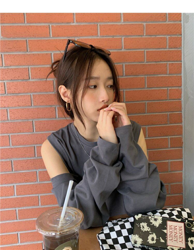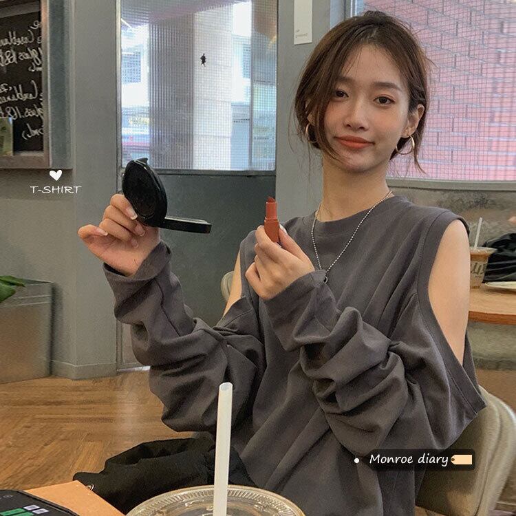 スタンダードTシャツシャツ ゆったりスプリング薄手トップス ロング レトロ 春物 長袖 MONROE64072151025