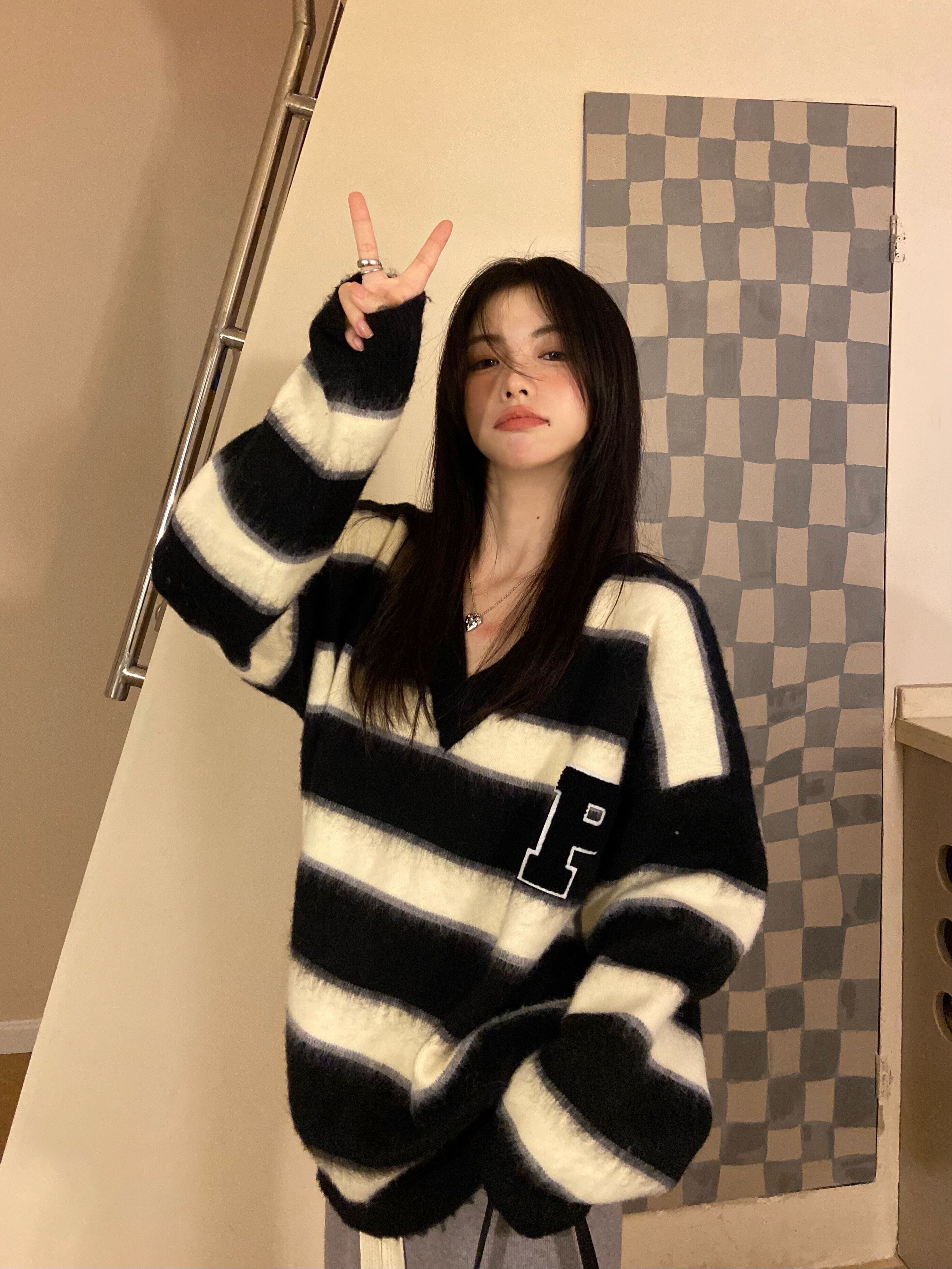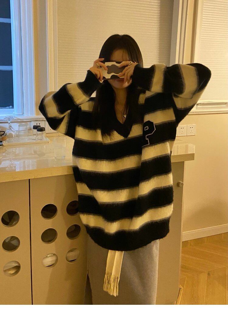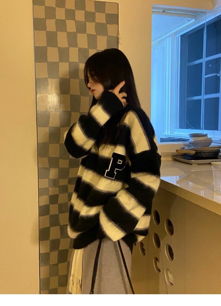 ストライプスタイルセーター ルーズジャケット 秋物ウィンタートップス オータム 冬物 MONROE96915793513
