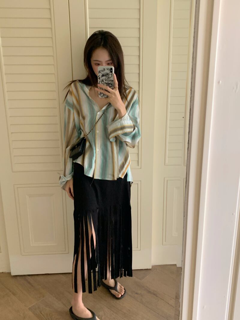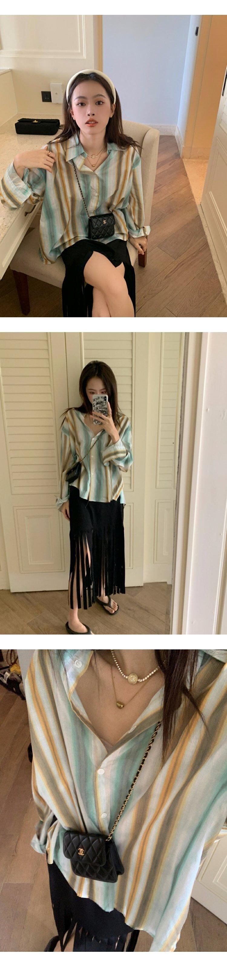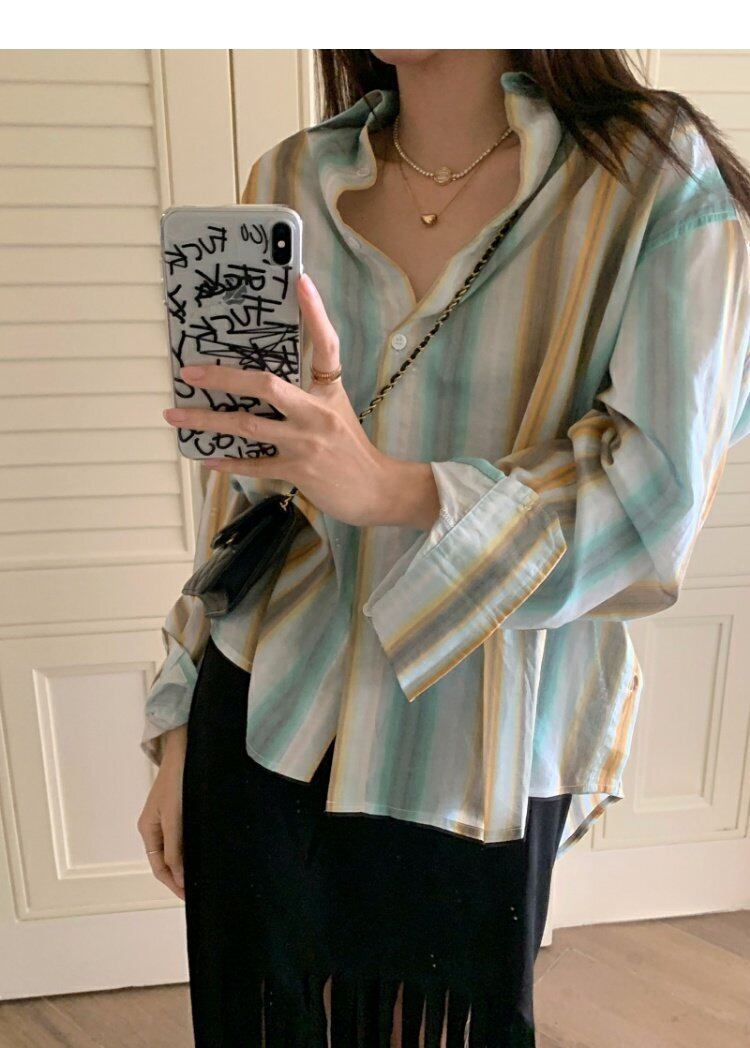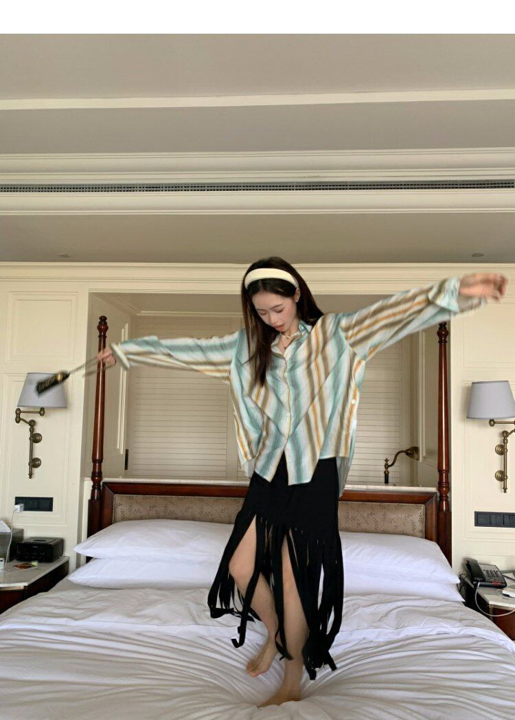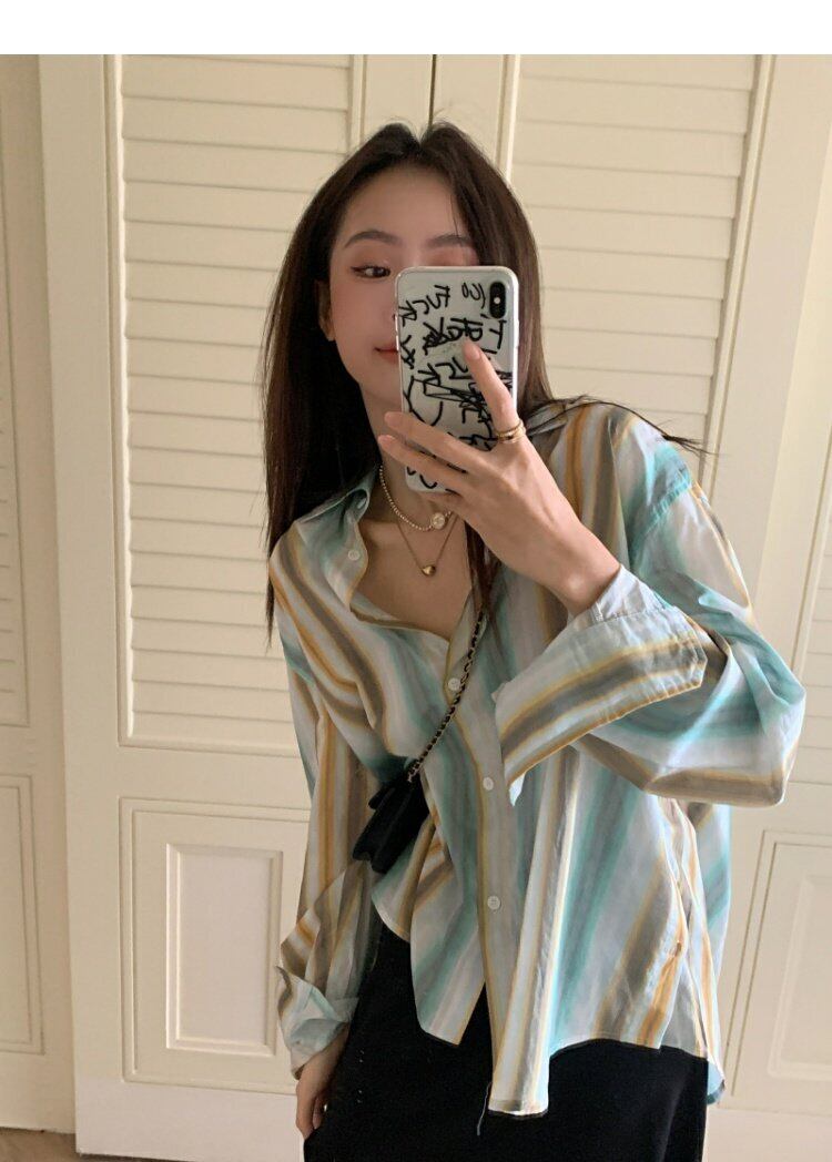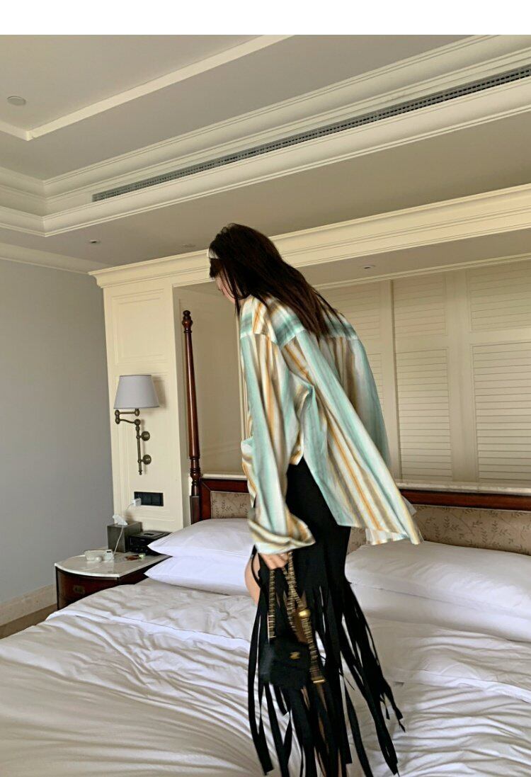 薄手シャツ レディーススタンダードジャケット スプリングストライプトップス レトロ 春物 MONROE5149619872