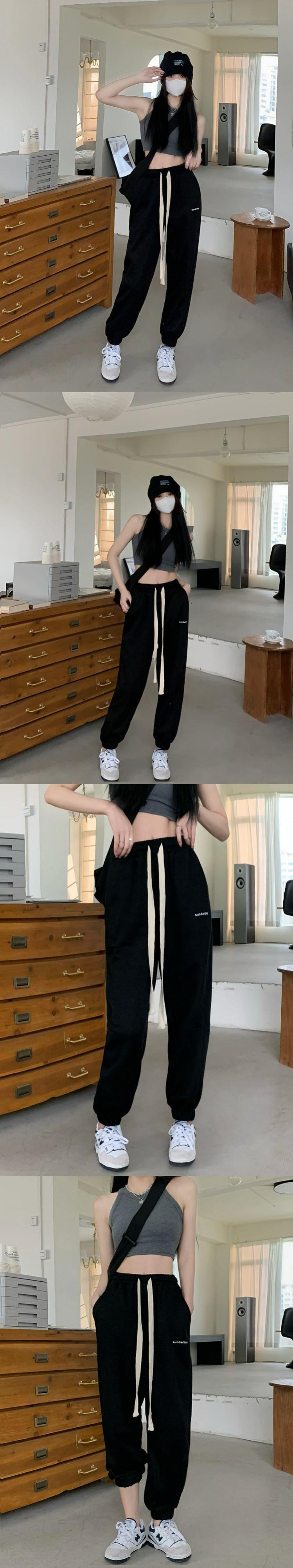 色:グレーの刺繡レタリングラウンジパンツ,黒の刺繡レタリングラウンジパンツ