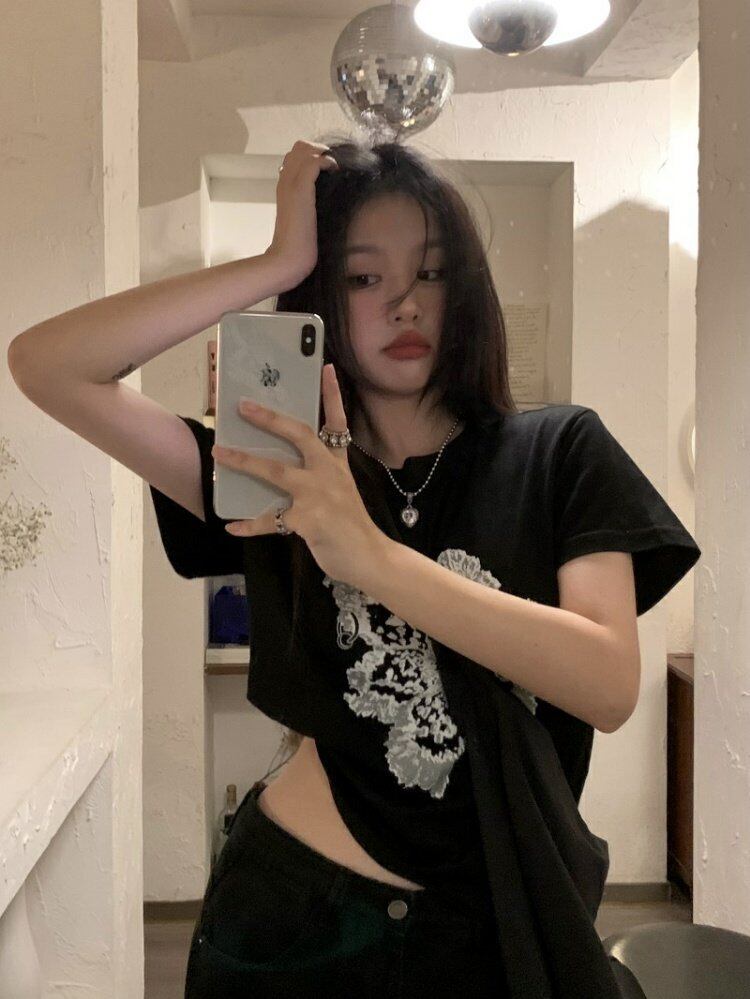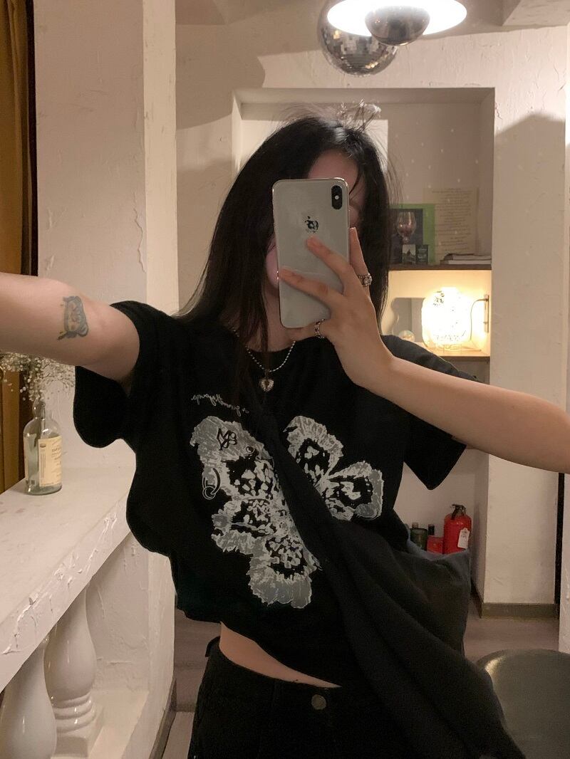 スタンダードTシャツスプリングルーズスリムトップス プリント半袖スリーブ ショート レトロ ハーフスリーブ 春物 MONROE51105596907