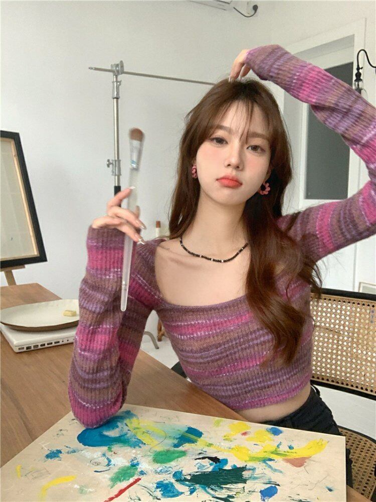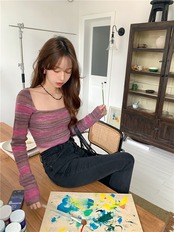 ストライプニットセーター ジャケット スプリングトップス ロング 春物 ピュア 長袖 MONROE67548469149