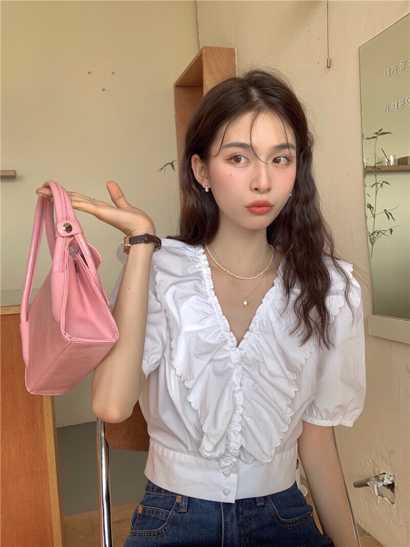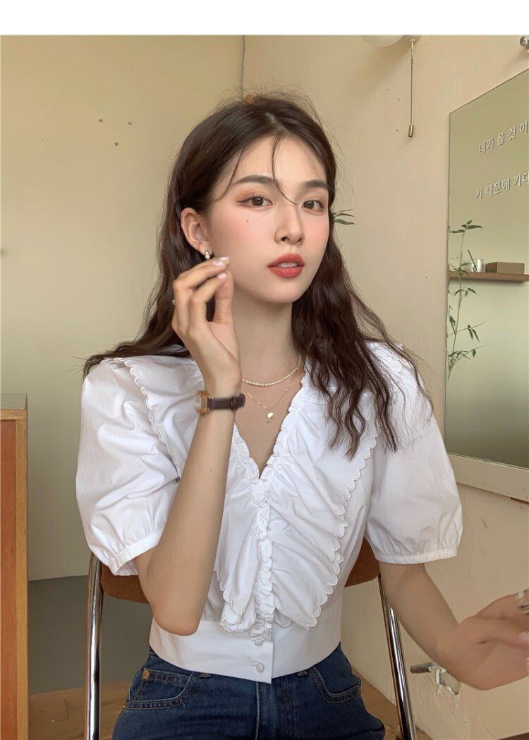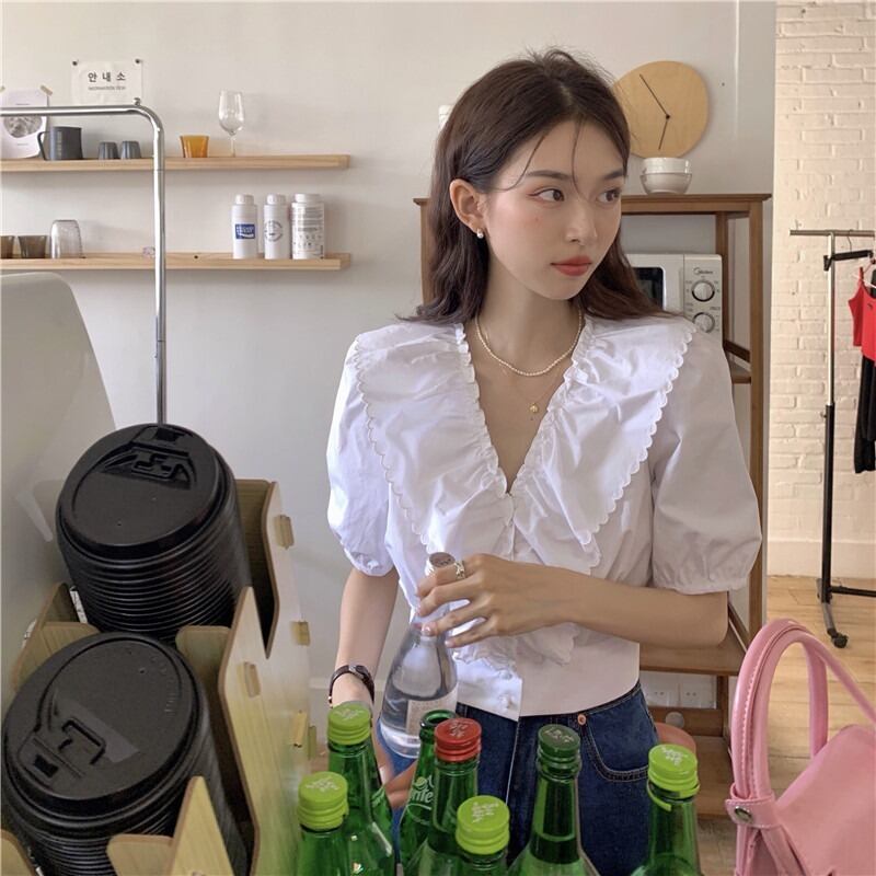 韓国ファッションホワイトシャツ ウェスト薄手トップス 夏服ゆったり 夏物 スタイル ウエスト MONROE87199601130