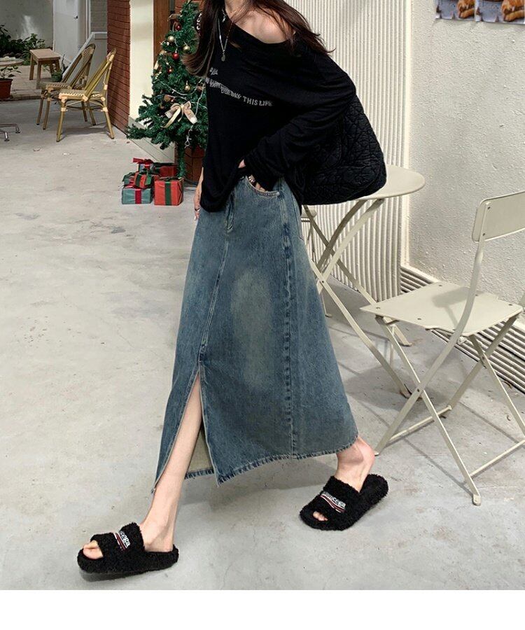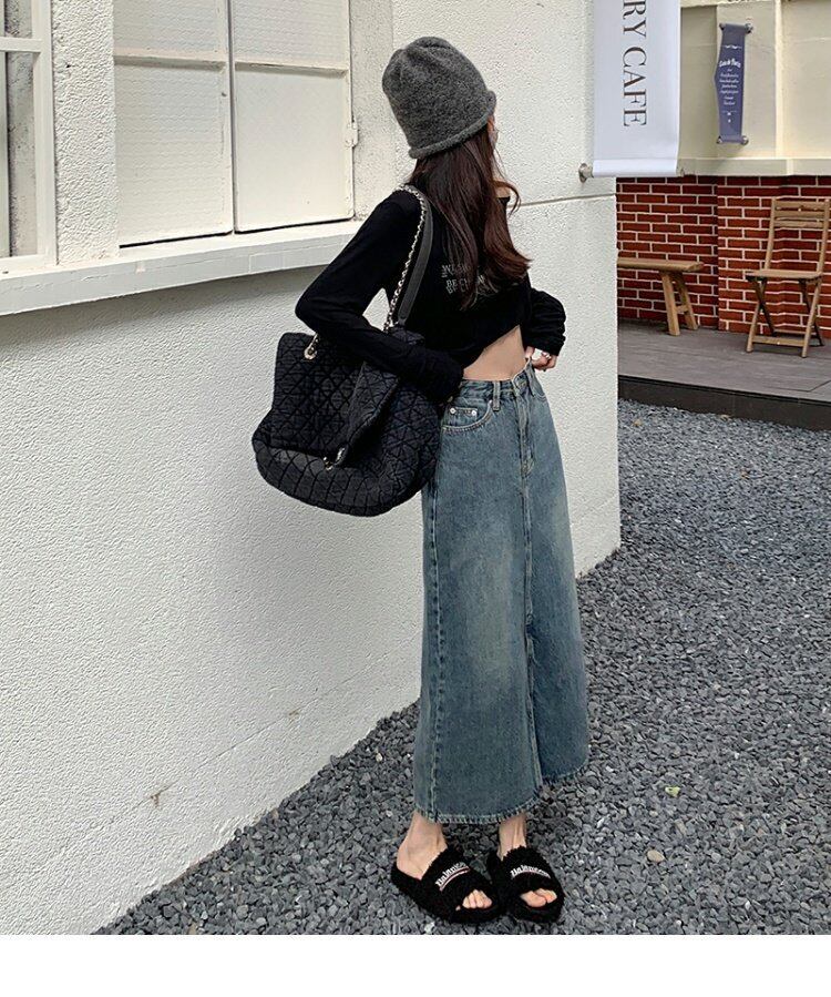 スプリング秋物スタンダードスカート ハイウェストウェストAラインロング レトロ 春物 オータム ウエスト MONROE90038460485