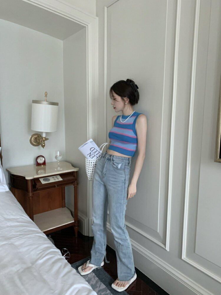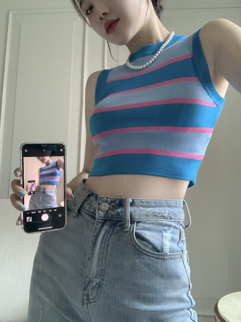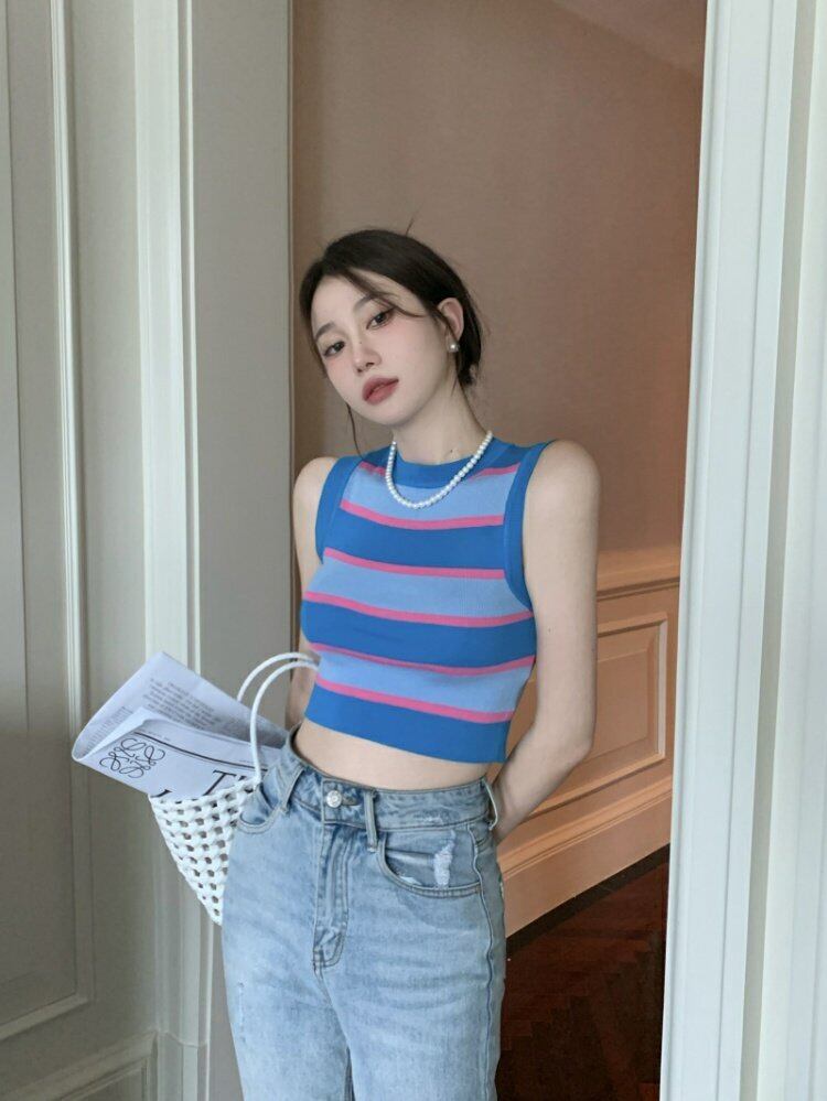 スリムフィット薄手ショートストライプトップス 夏服アウターゆったりシャツ 夏物 MONROE41785927067