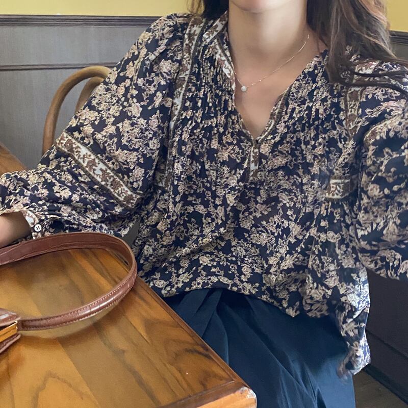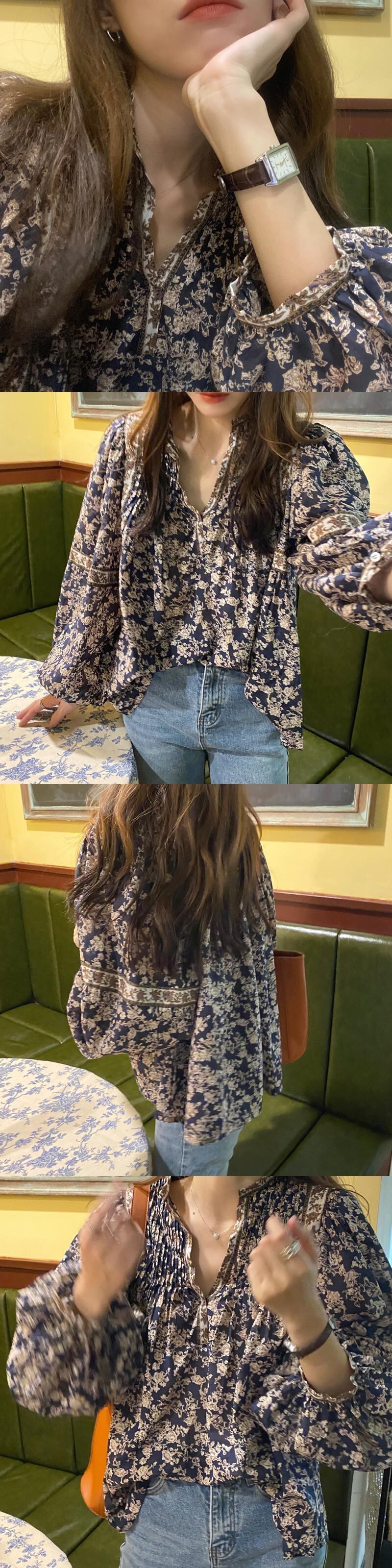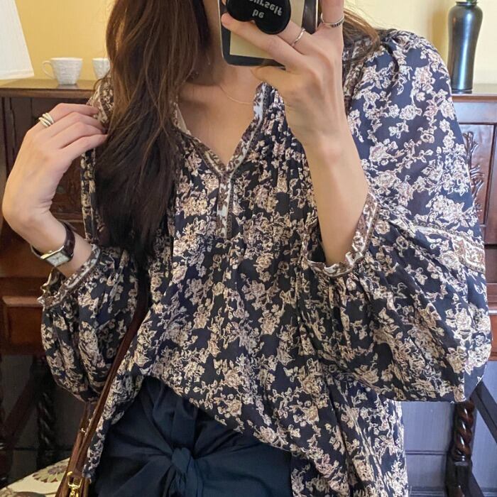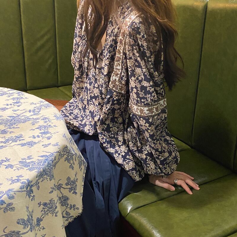 フローラルシャツ スタンダードルーズFlowerデザイン スプリングトップス ロング レトロ 春物 花柄 フラワーデザイン 長袖 MONROE52380949470
