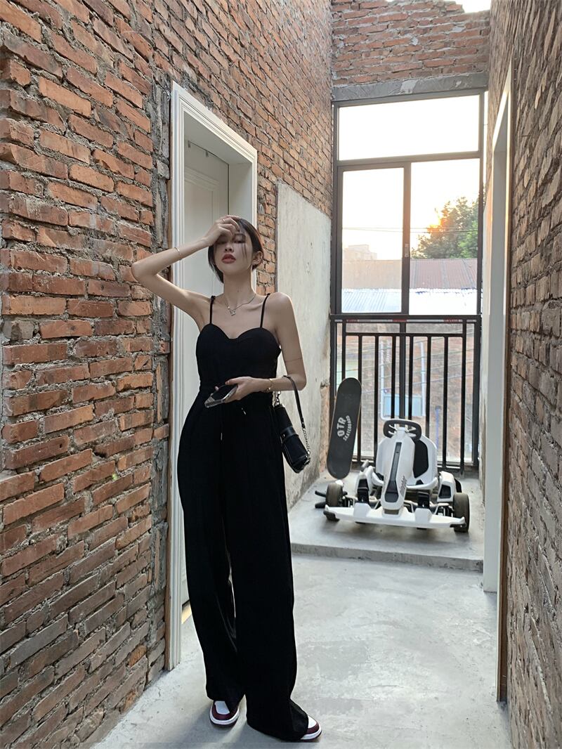 ブラックワンピースカジュアルパンツ ウェストスリム夏服ルーズ 夏物 ウエスト MONROE27915971703