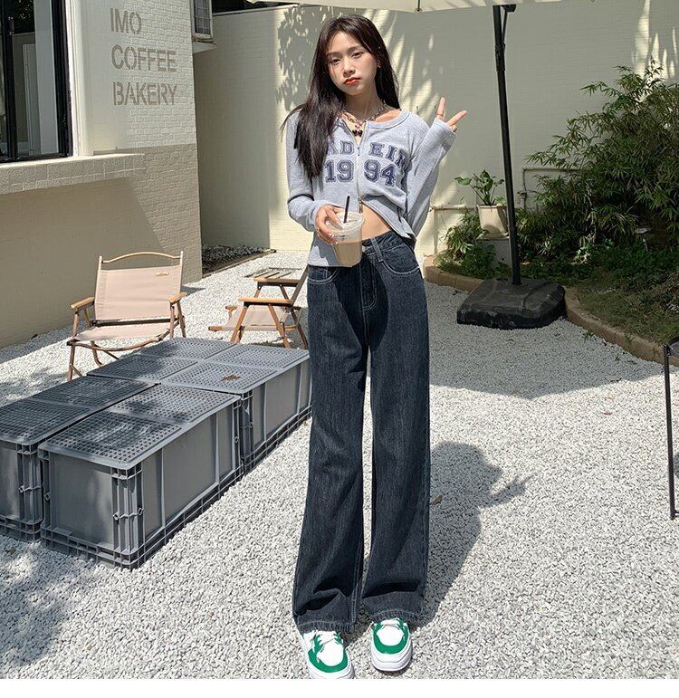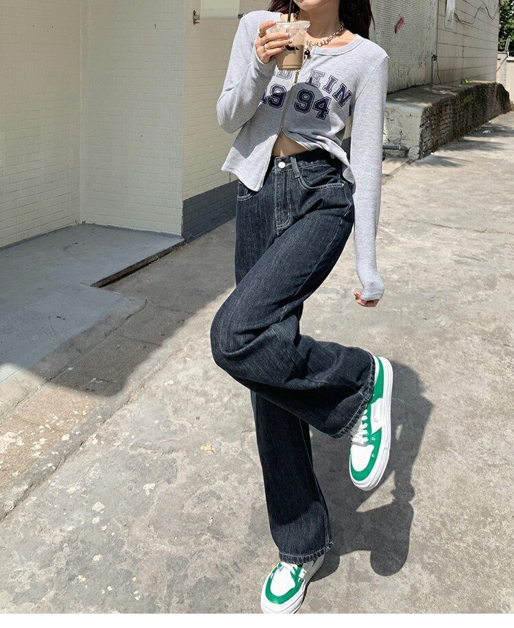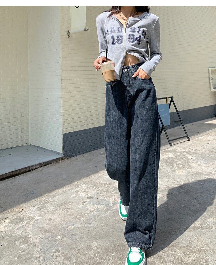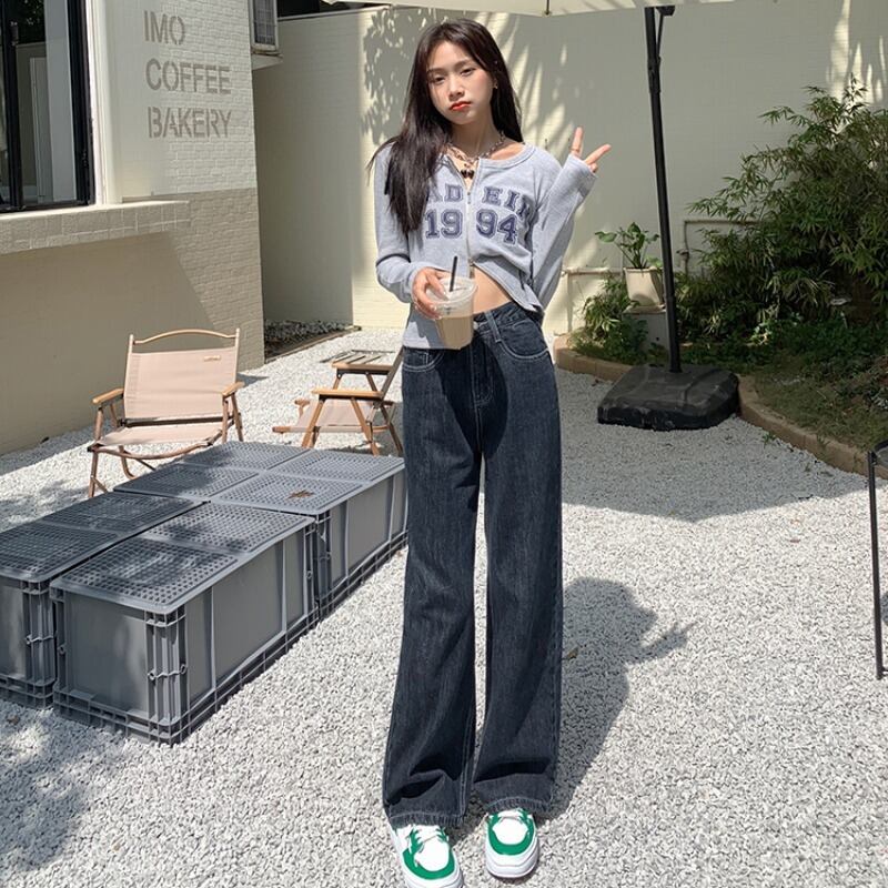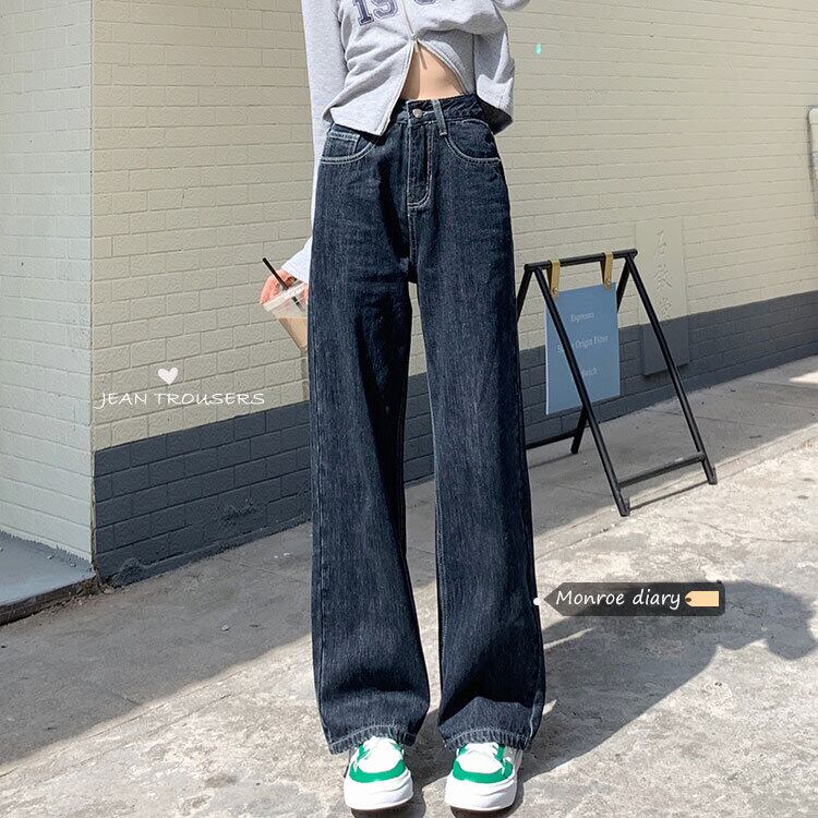 韓国ファッションハイウェストウェストスリムジーンズ スプリング薄手ルーズワイドレッグロングパンツ 春物 ワイドパンツ スタイル ウエスト MONROE27351598650