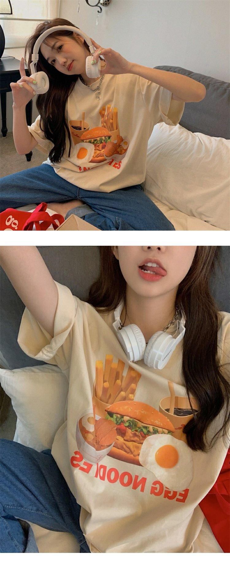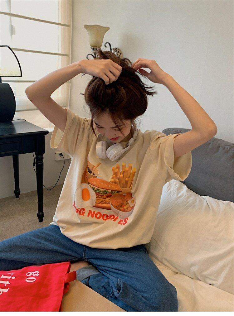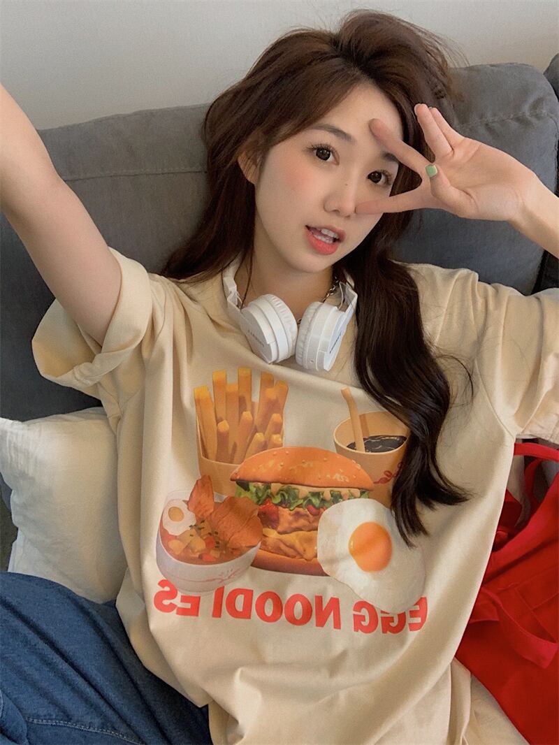 スタンダードTシャツルーズ薄手トップス ゆったりシャツ レッド レトロ ミドル丈 MONROE27927933753