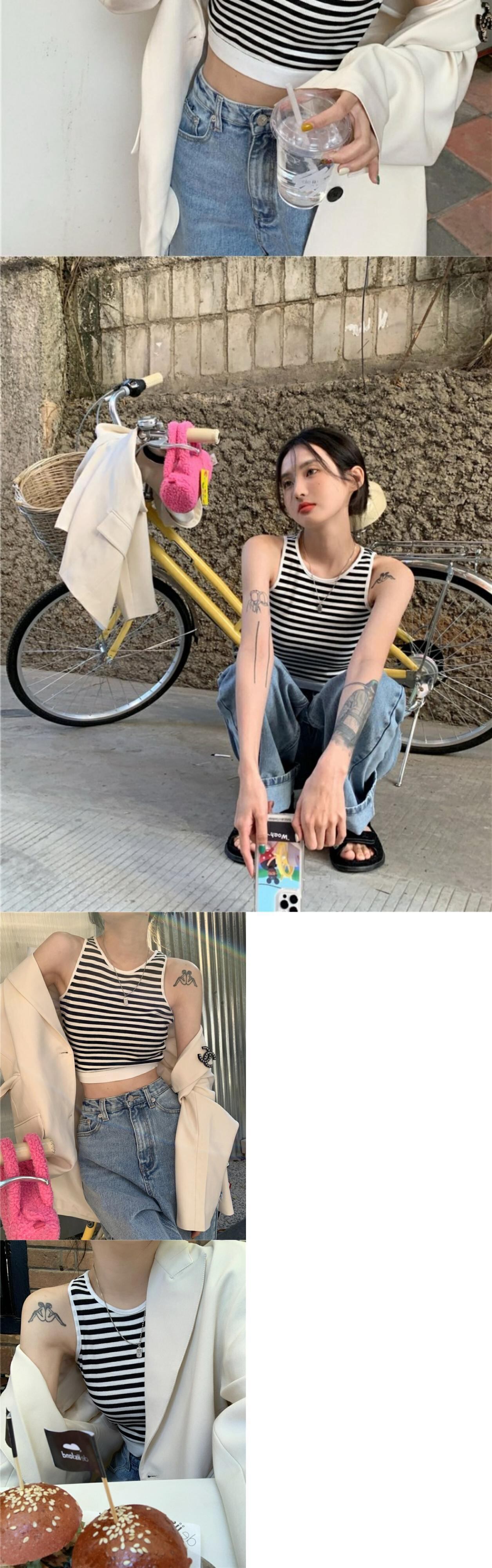 ストライプスリムフィットスプリング薄手トップス 大人ガーリー スウィート キュート カジュアル 春物 MONROE82885218891
