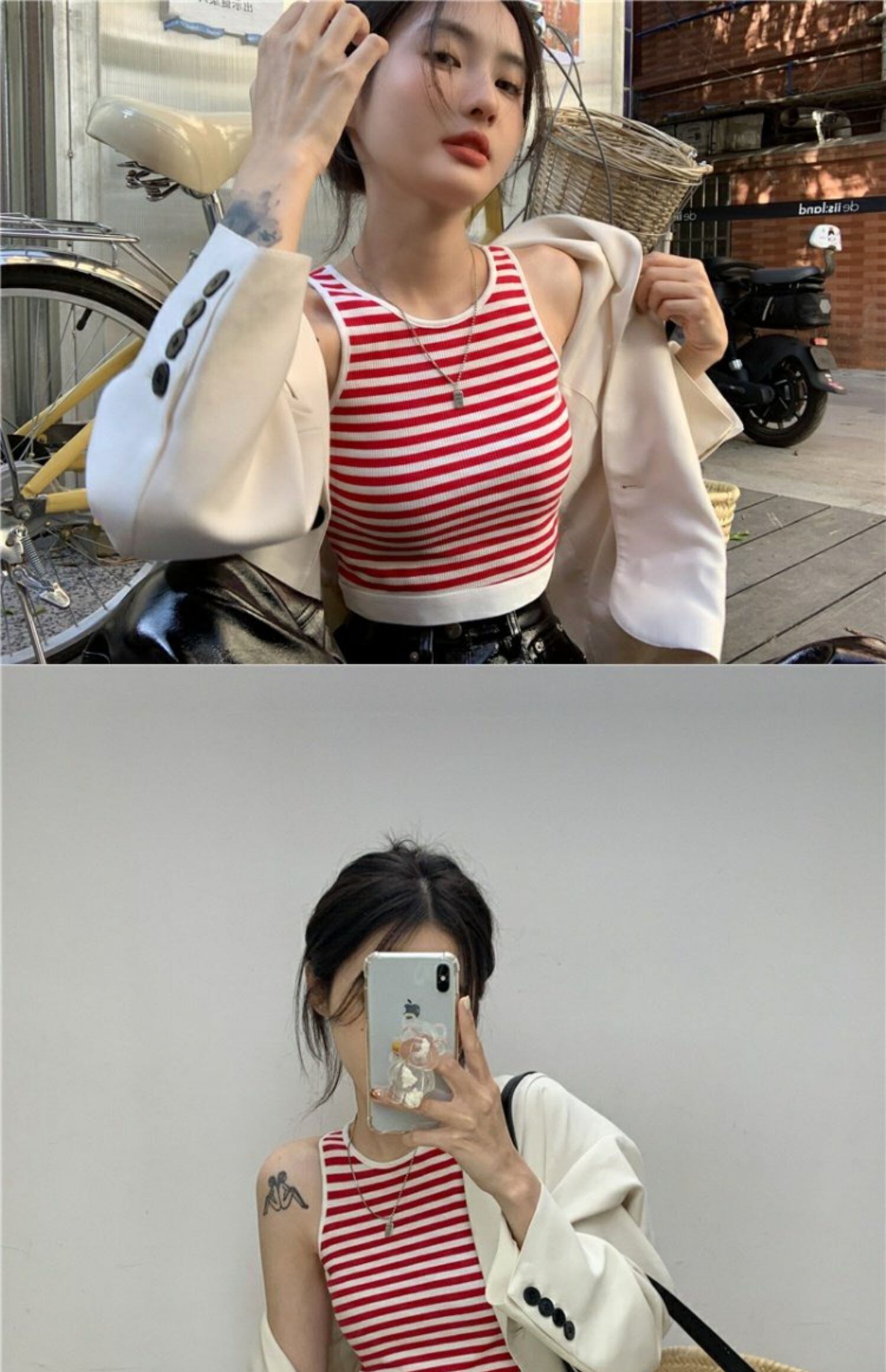 色:黒と白のストリップ,赤と白