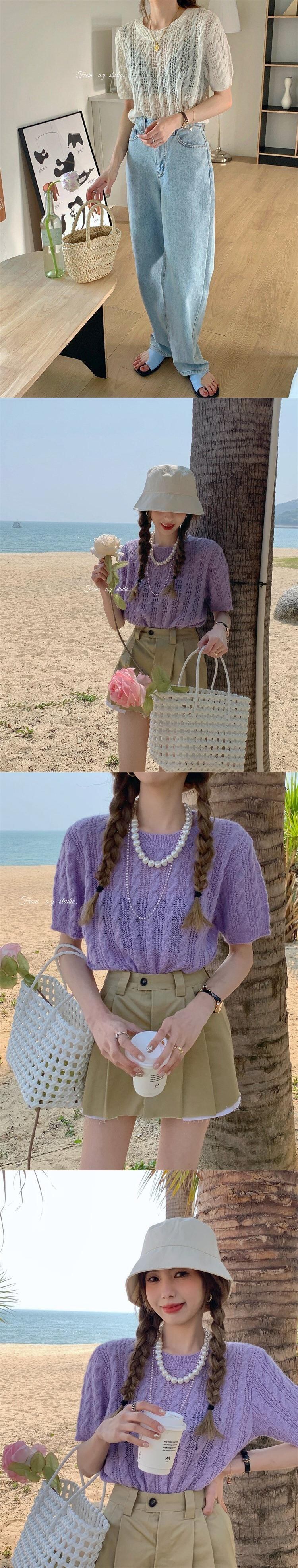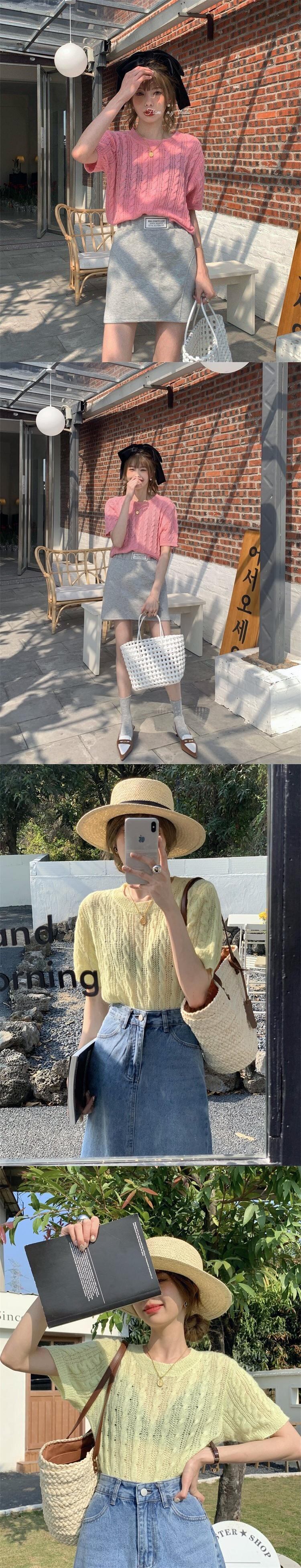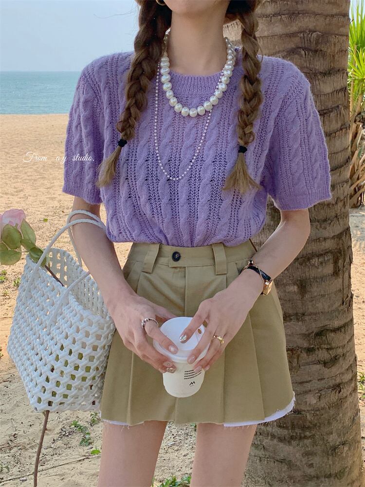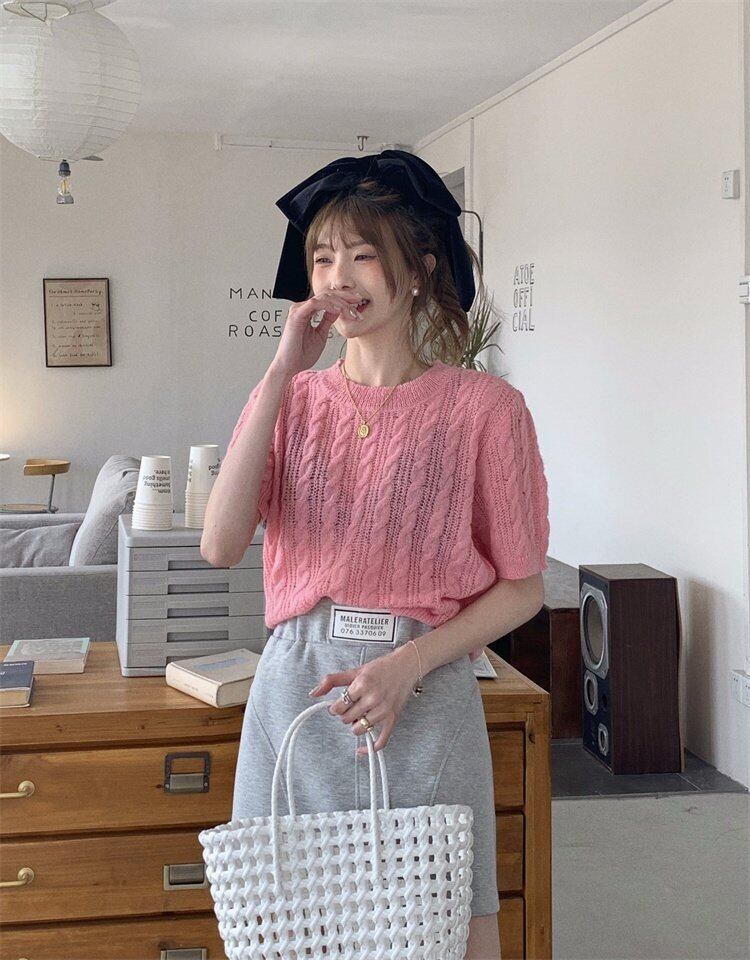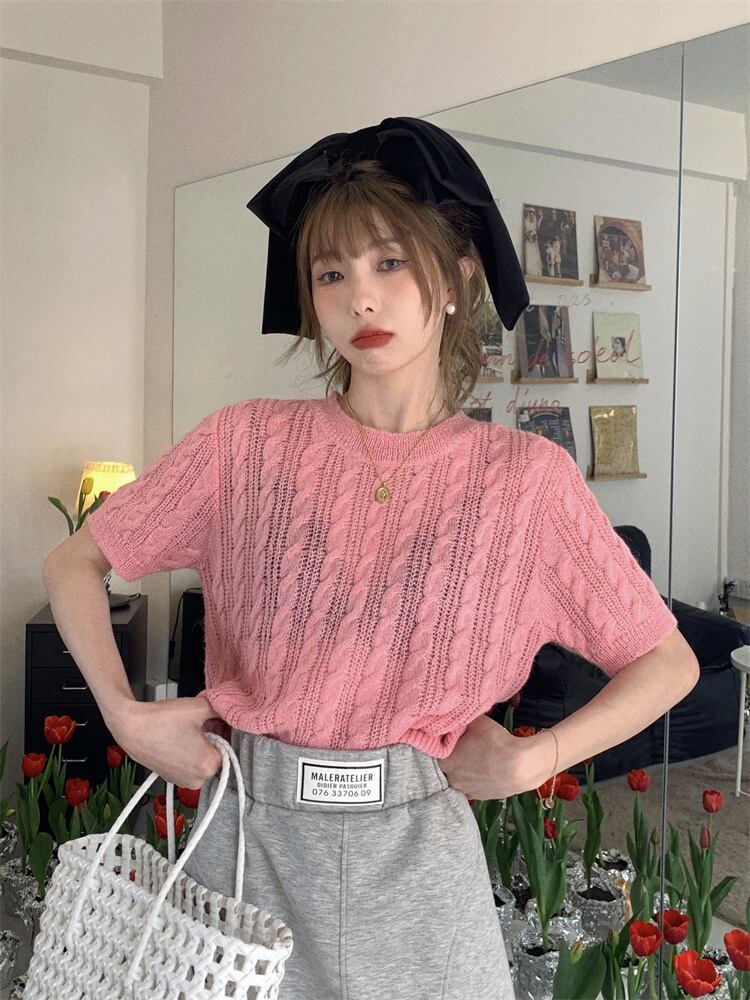 韓国ファッションニット 夏服トップス ルーズ薄手ゆったりシャツ ニット 夏物 スタイル MONROE81948283836