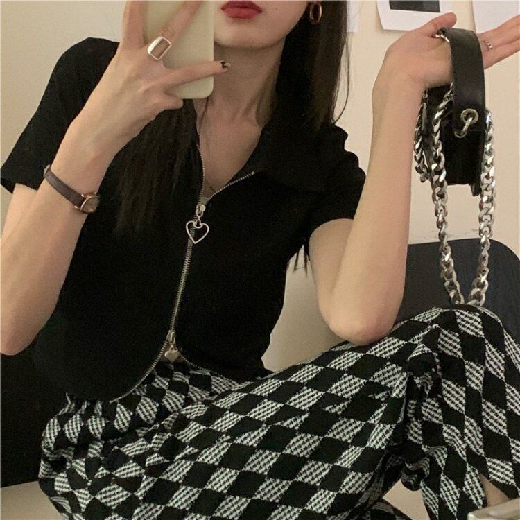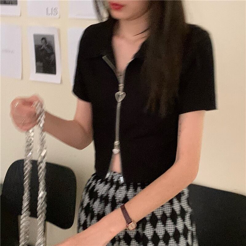 スタンダードブラックショートTシャツシャツ ゆったりスプリングスリムトップス レトロ 春物 MONROE64749247455