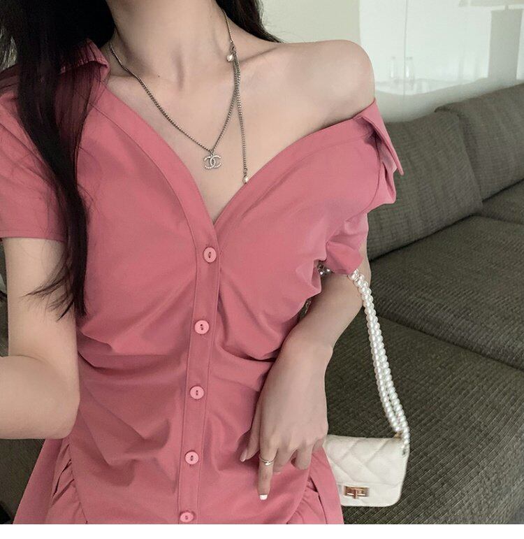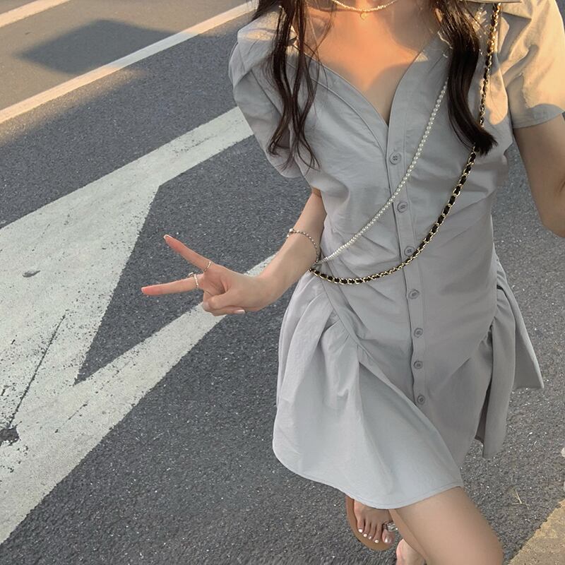ワンピーススプリングVネックウェスト薄手スカート シャツ 春物 ウエスト MONROE7623951713