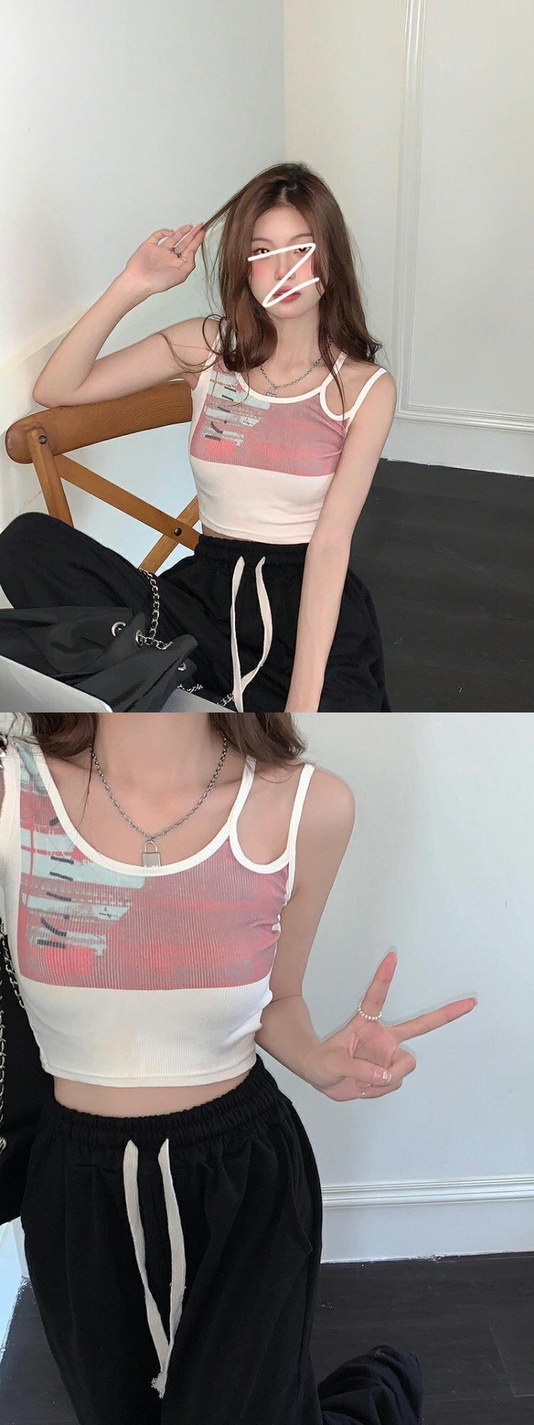 色:ダブルショルダーストラッププリントサスペンダー,黒いズボン