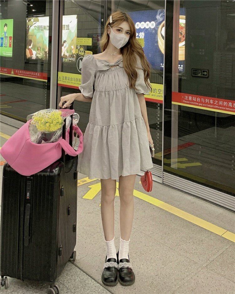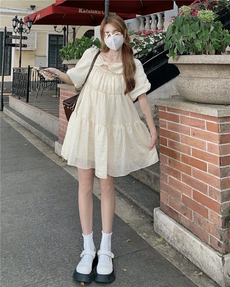 カラーワンピーススプリングAラインスカート 大人ガーリー スウィート キュート カジュアル 春物 MONROE80727305627