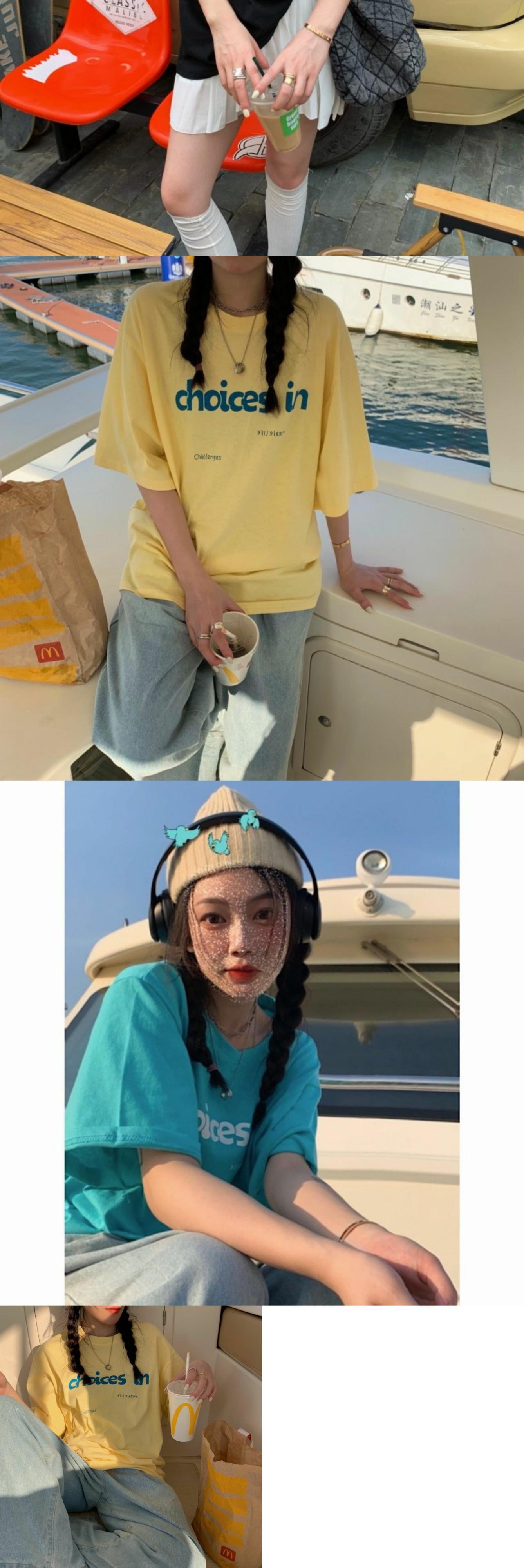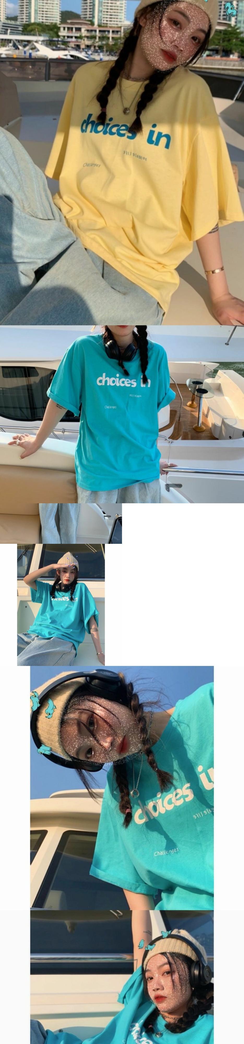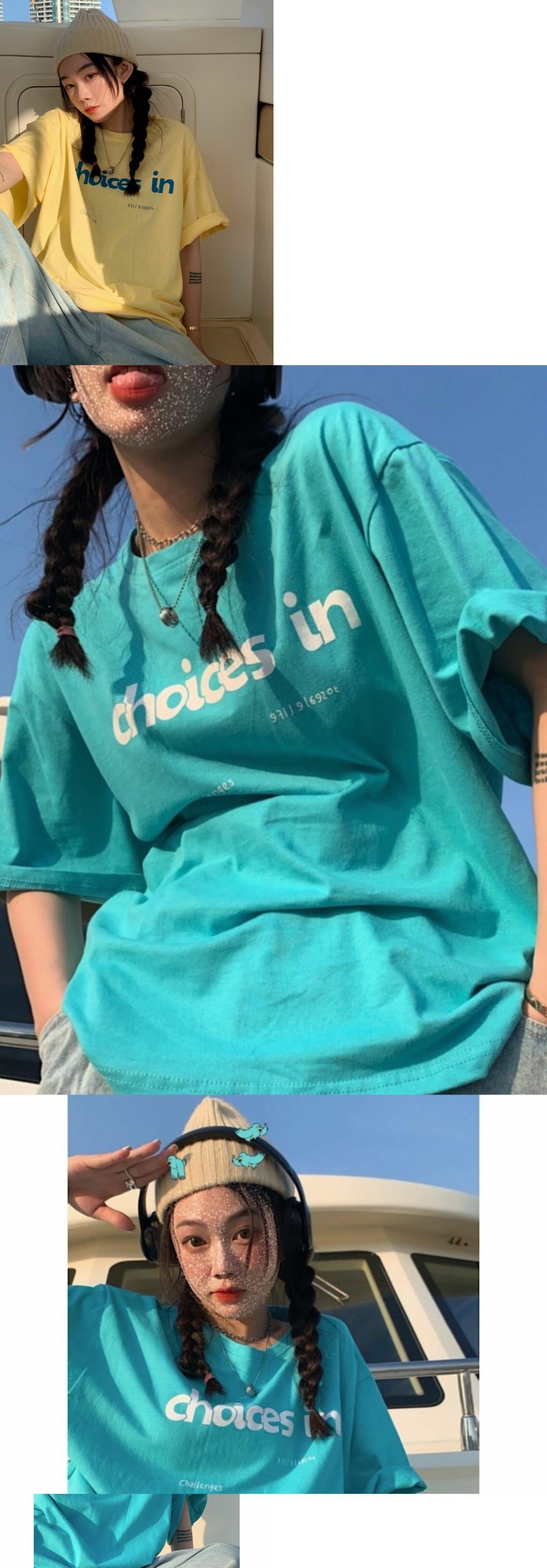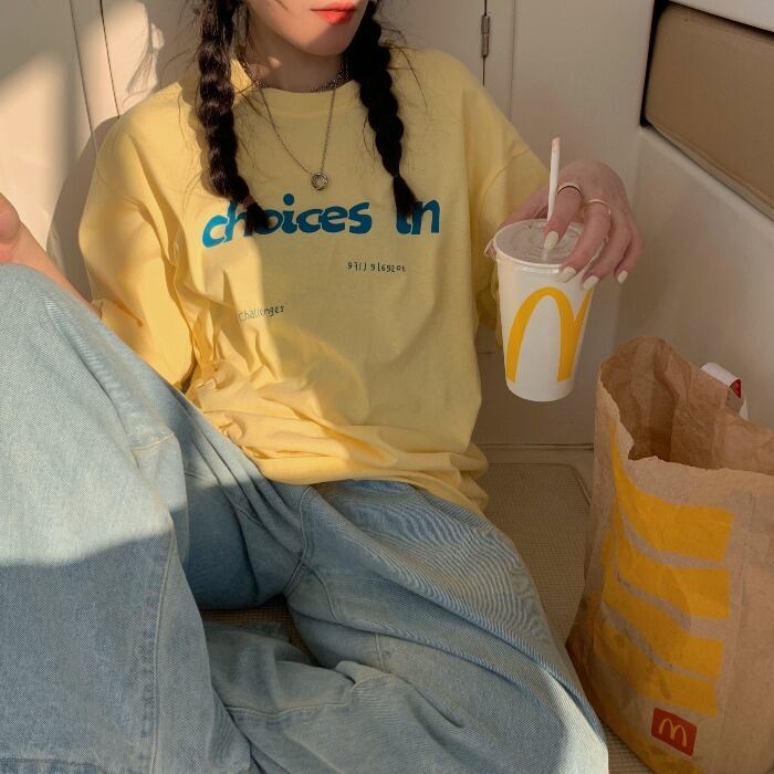 スタンダードTシャツシャツ ゆったりスプリングイエロールーズカジュアルトップス レトロ 春物 ミドル丈 MONROE10638151534