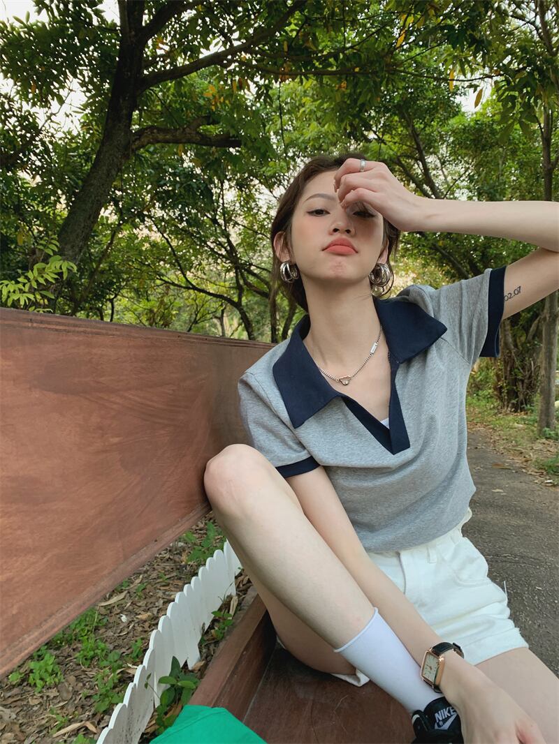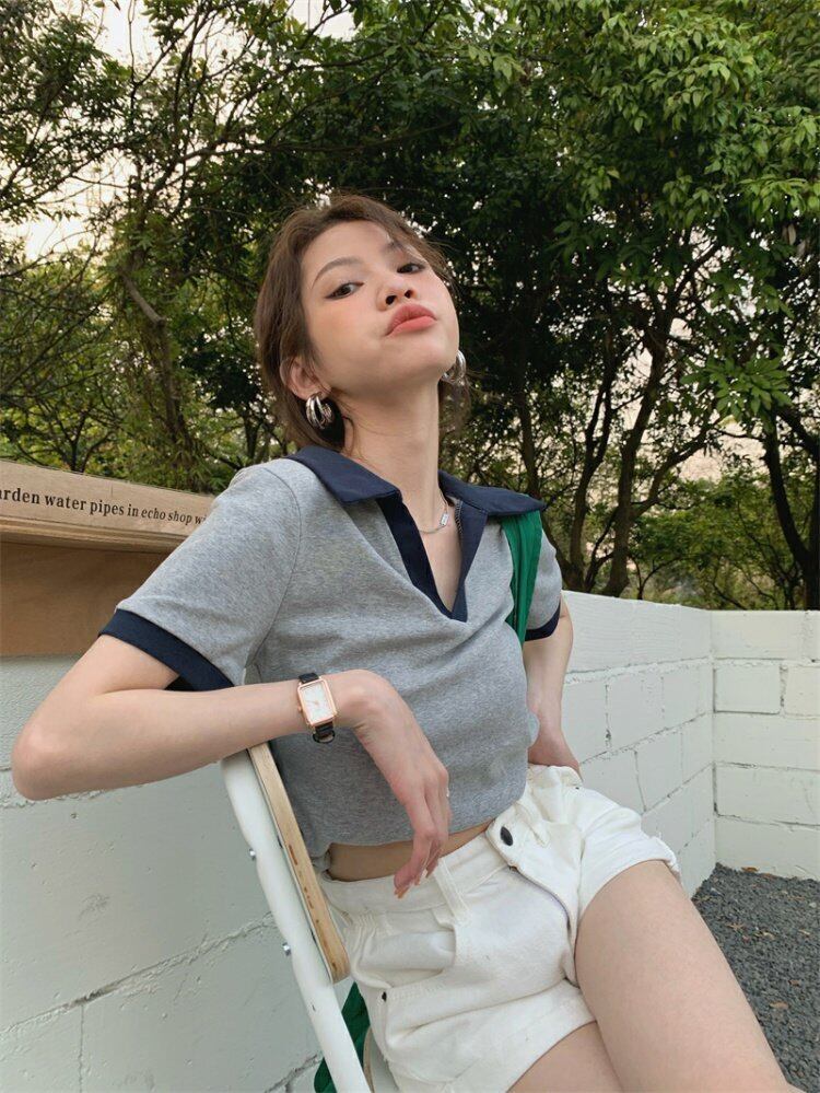 Vネックプルオーバー Tシャツシャツ スプリング夏服ルーズ半袖スリーブトップス ショート ハーフスリーブ 春物 夏物 MONROE60588517690