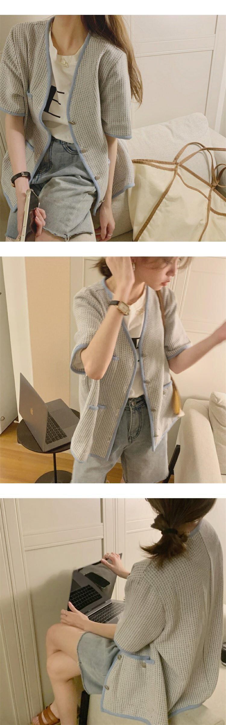 スタンダードVネックカーディガントップス スプリングジャケット レトロ 春物 MONROE43174679832