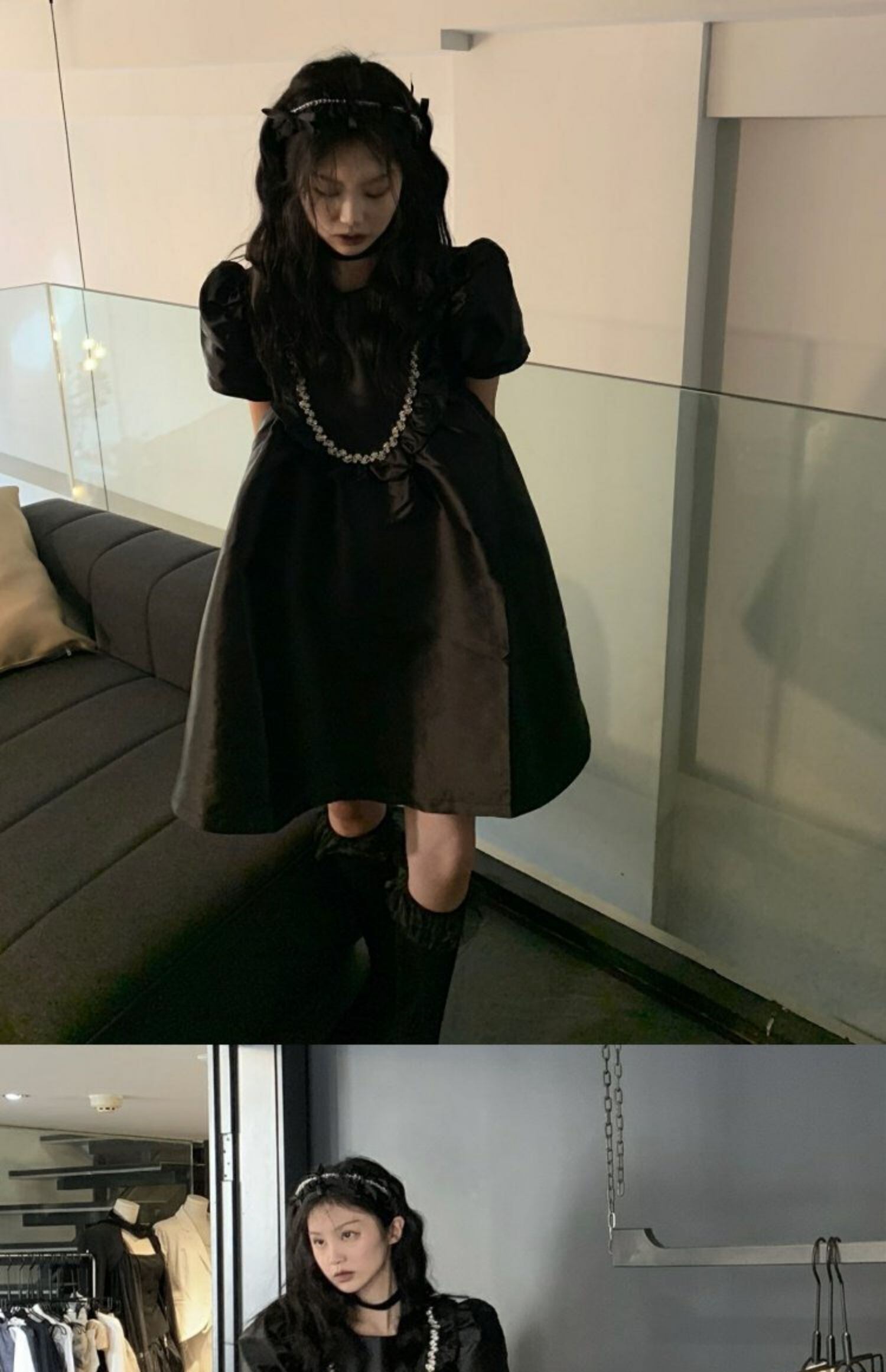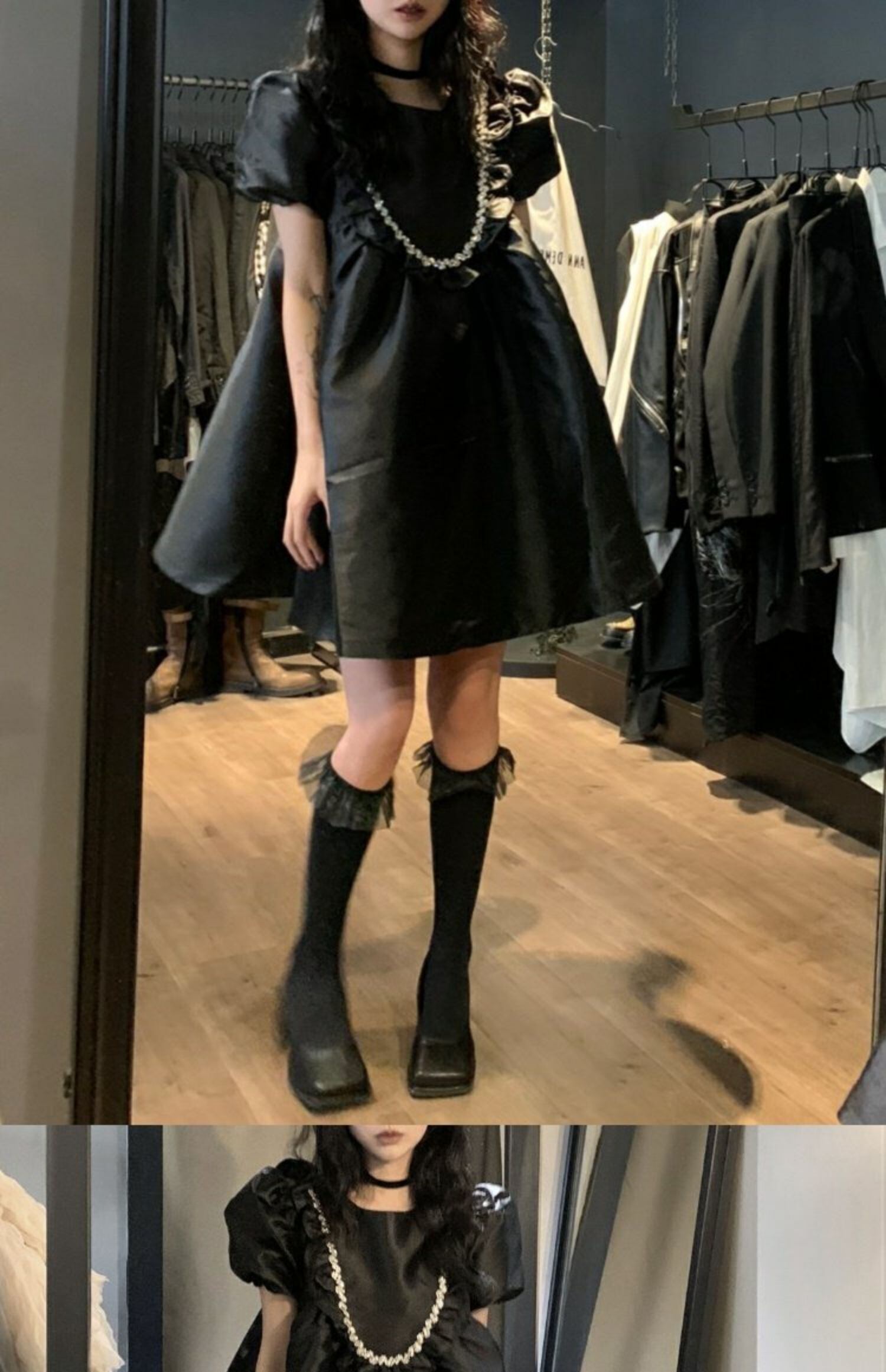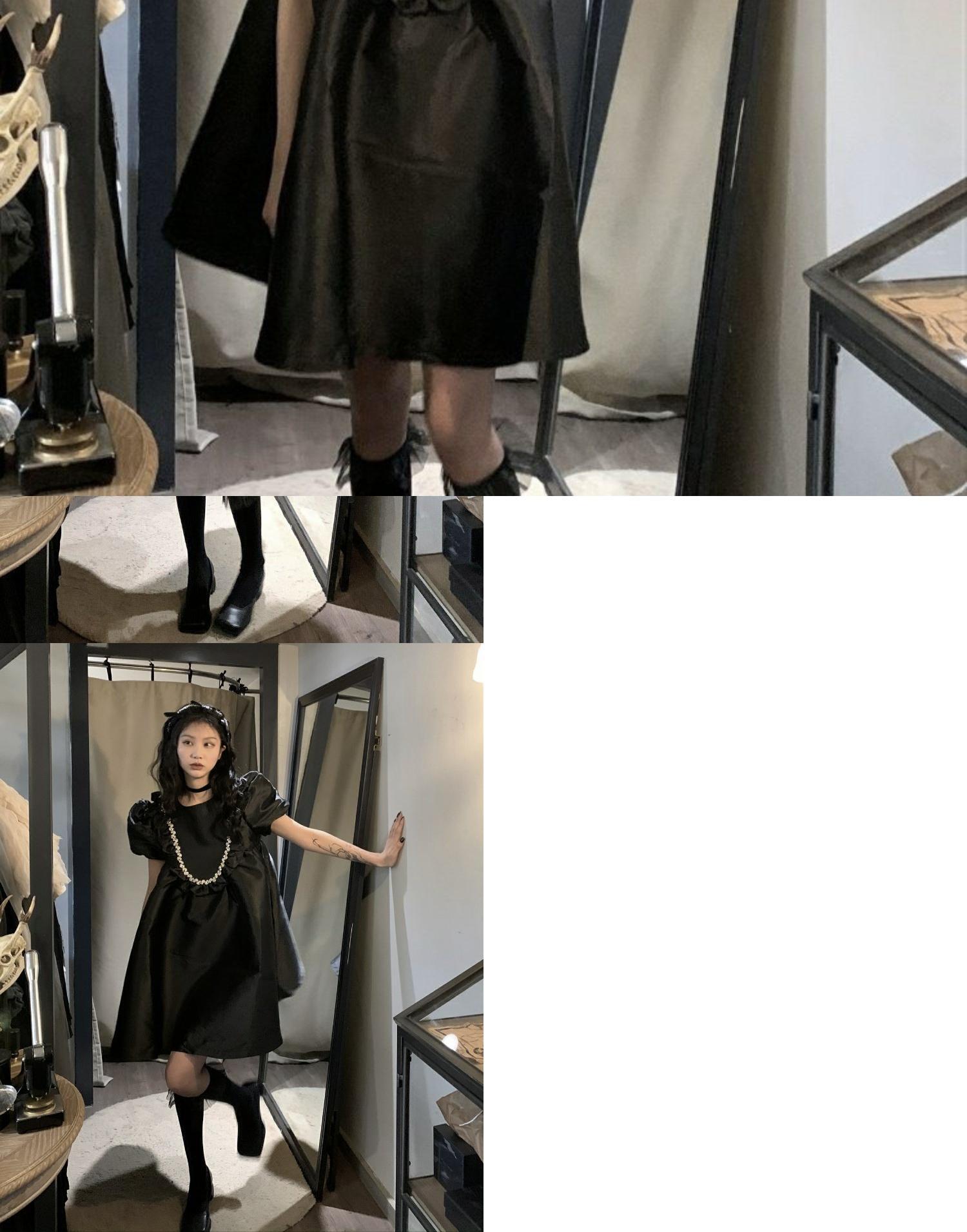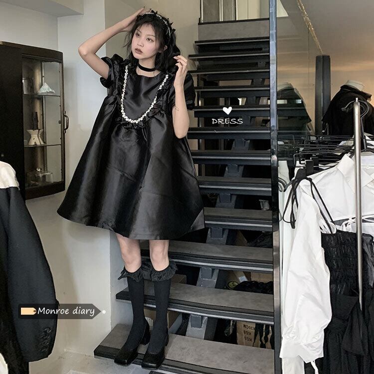 スタイルブラックスタンダードワンピースルーズAラインスカート スプリング薄手 レトロ 春物 MONROE62461823869