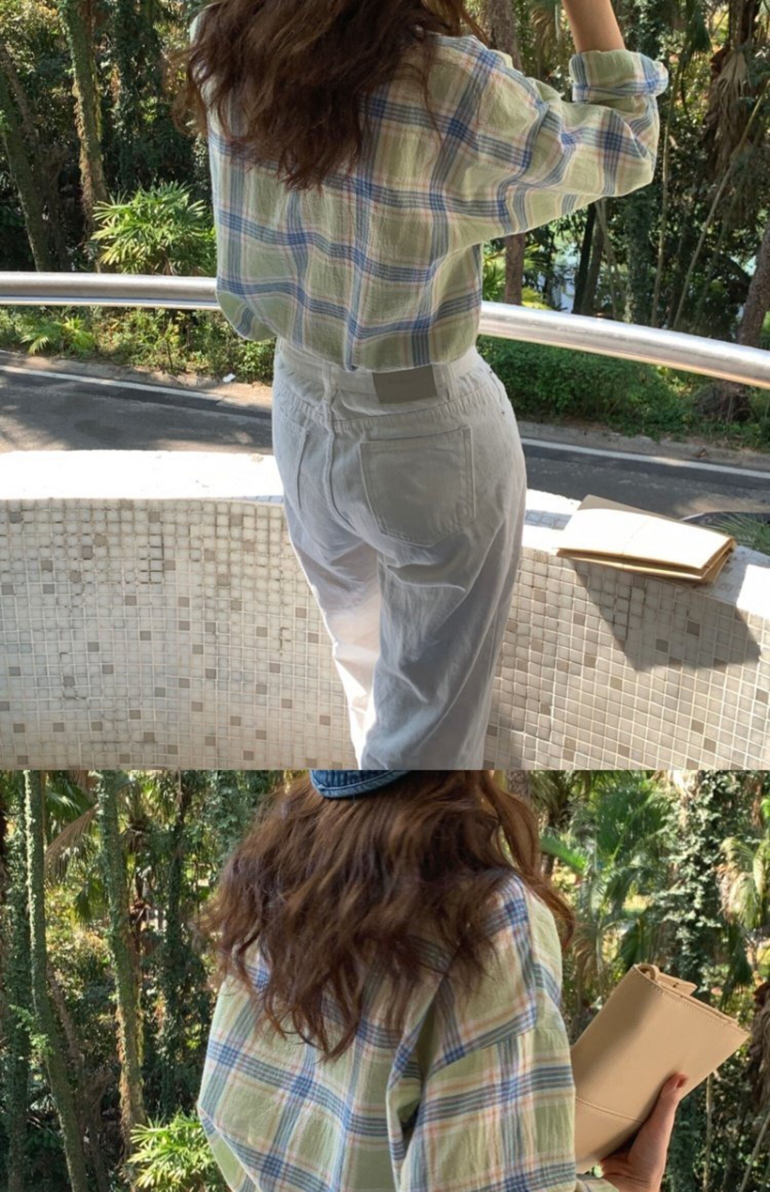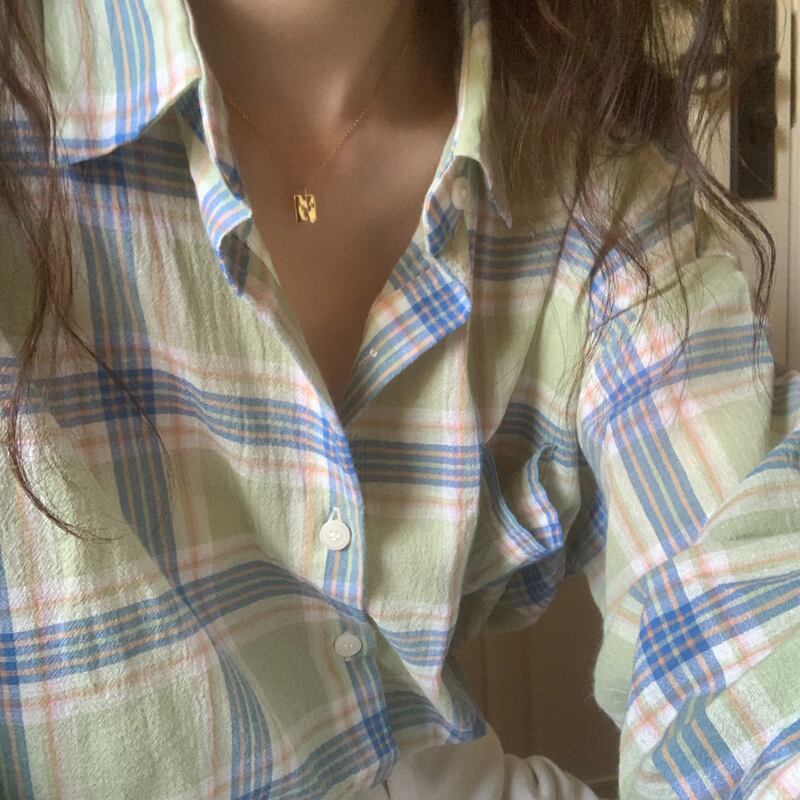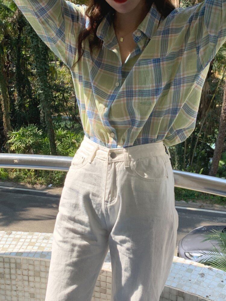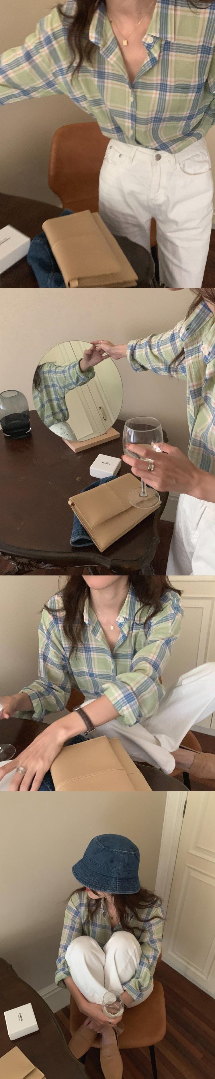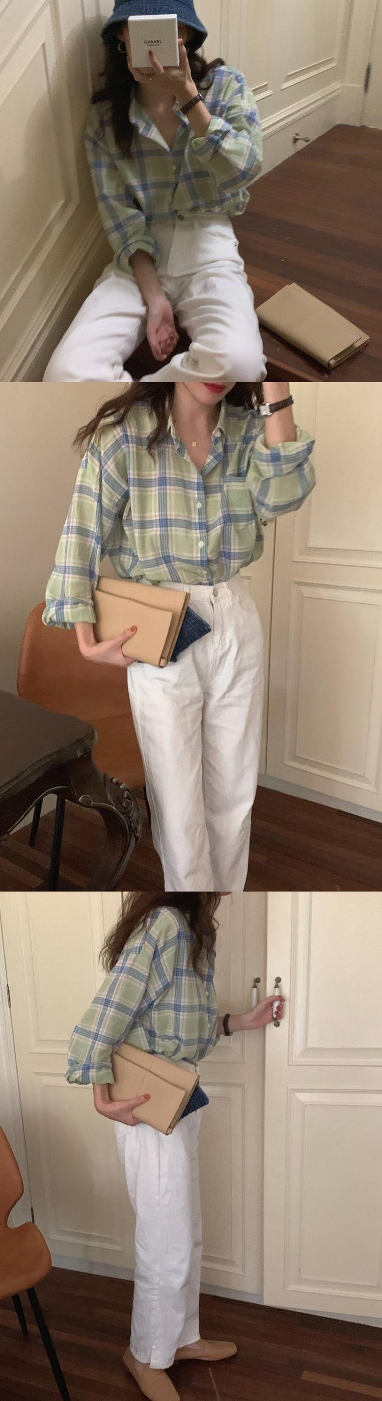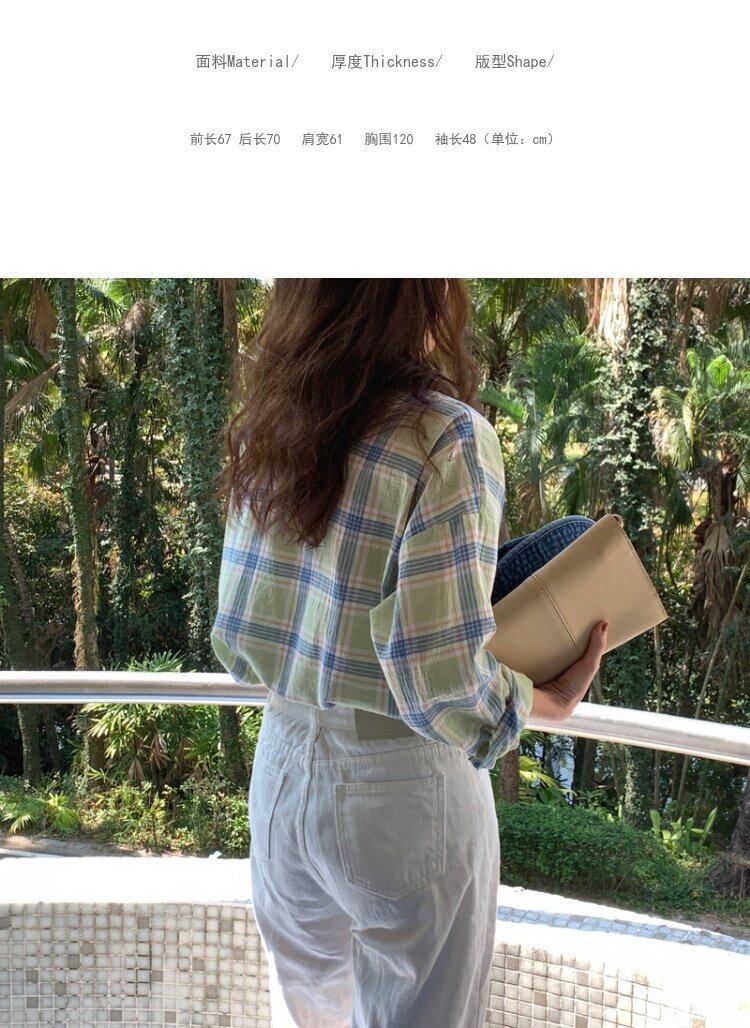 グリーン格子柄薄手シャツ カラージャケット スプリング夏服トップス 春物 夏物 MONROE91560134313