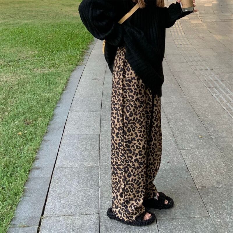 ハイウェストウェスト薄手レオパードプリント柄カジュアルパンツ スプリング秋物ルーズワイドレッグ 春物 オータム ワイドパンツ ウエスト MONROE62350633841