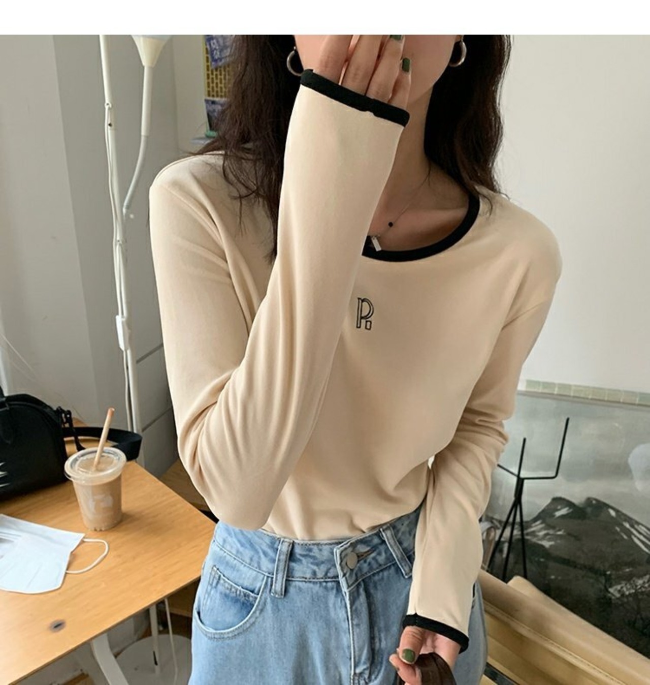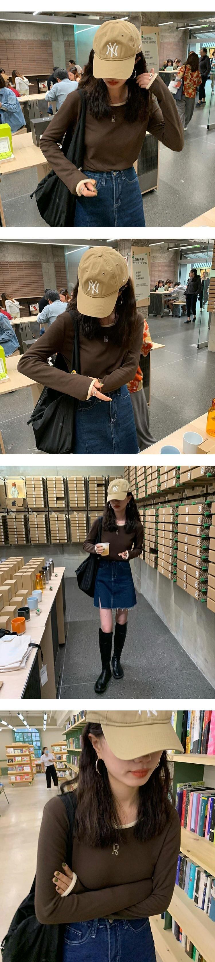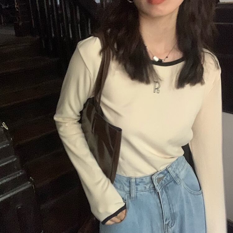 韓国ファッションカラー厚みTシャツシャツ ゆったりスプリング秋物プルオーバー トップス ロング 春物 オータム スタイル 長袖 MONROE70371996651