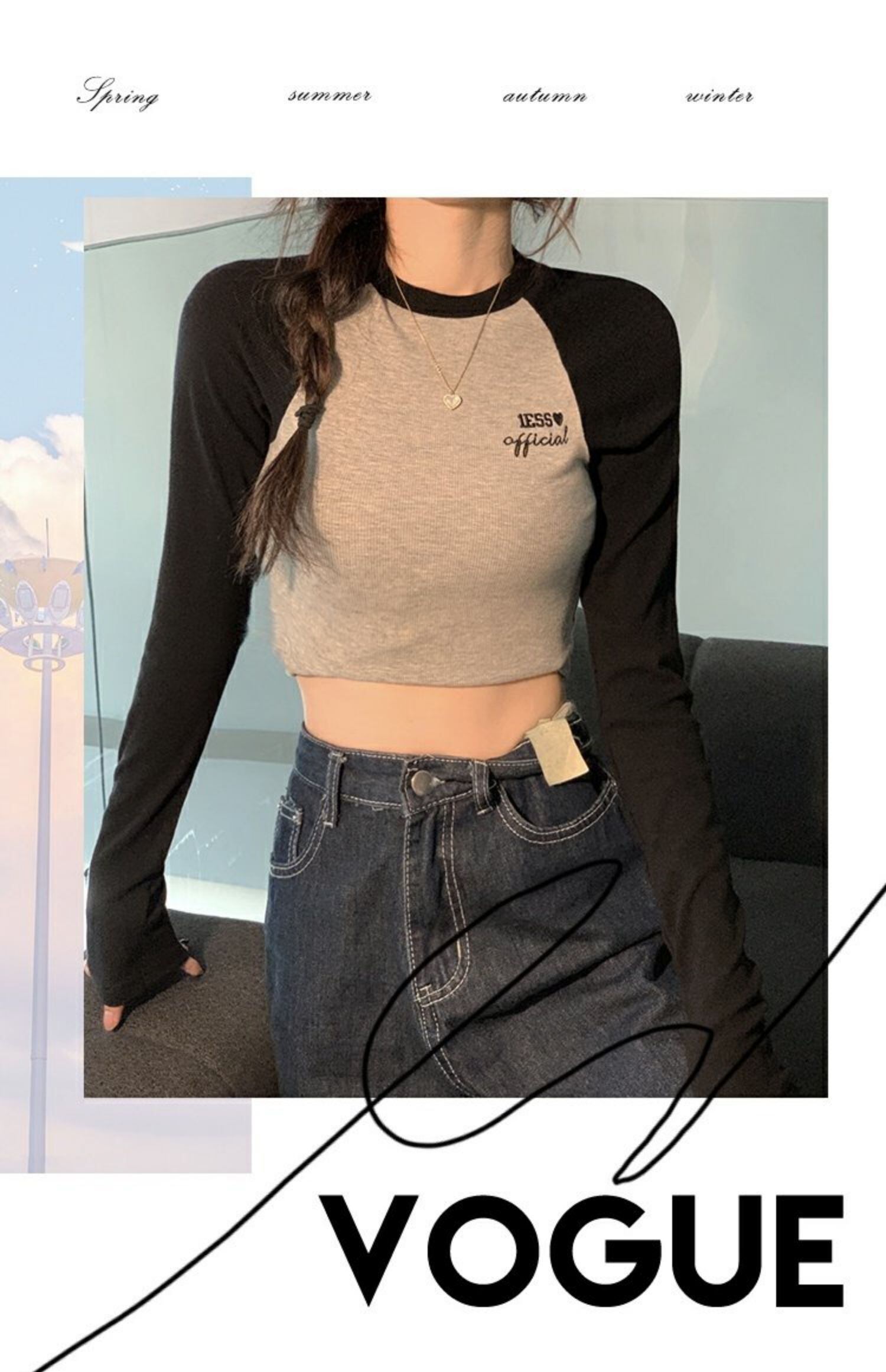 カラースリムフィットTシャツシャツ ショートゆったりスプリング秋物プルオーバー トップス ロング 春物 オータム 長袖 MONROE44873091486