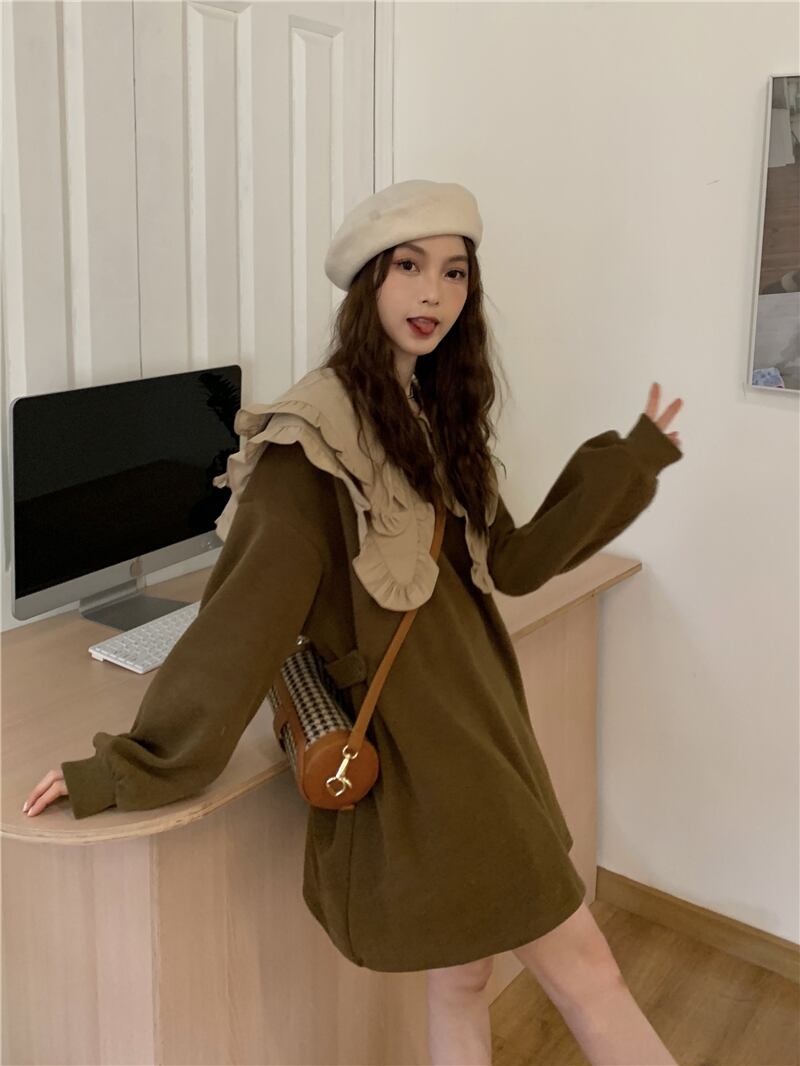 スタンダードワンピースレディーススプリング秋物ルーズショートスカート レトロ 大人ガーリー スウィート キュート カジュアル 春物 オータム MONROE91418654984