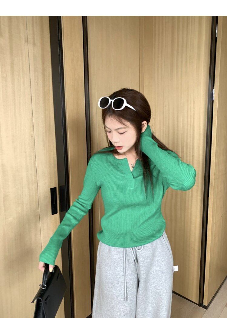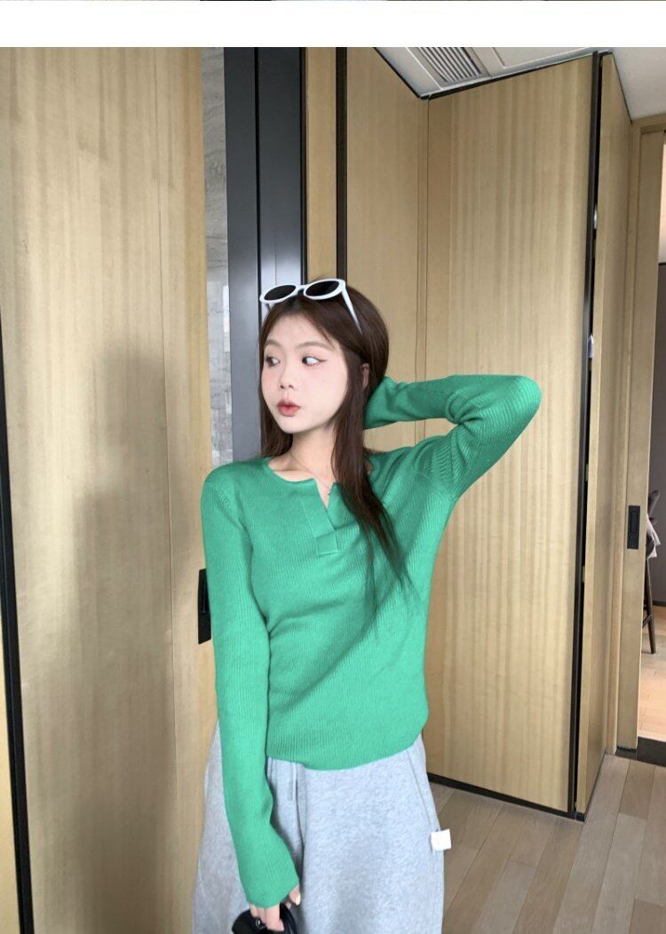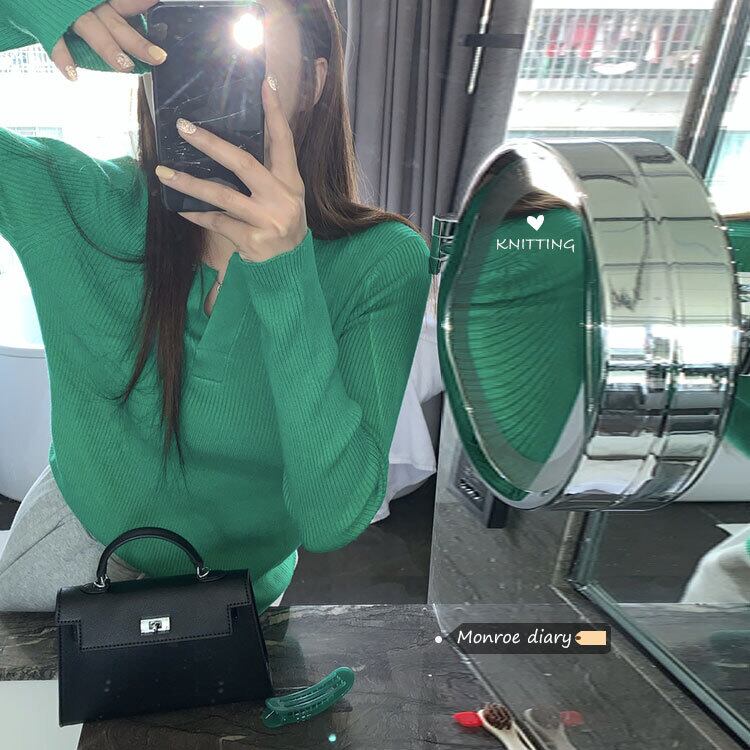 グリーンスタンダード韓国ファッション長袖スリーブニットセーター ジャケット スプリングスリムフィット薄手トップス ロング レトロ 春物 MONROE22788787449