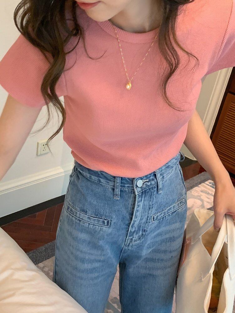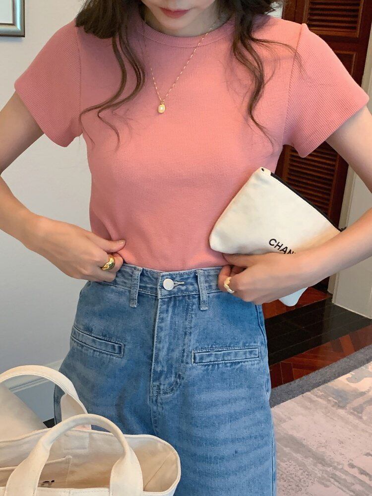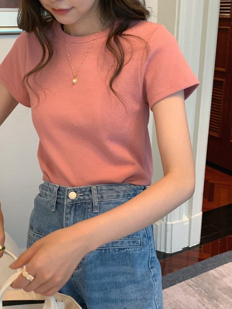 韓国ファッションTシャツスプリングスリムトップス ラウンドネック 春物 Oネック スタイル MONROE90770513453