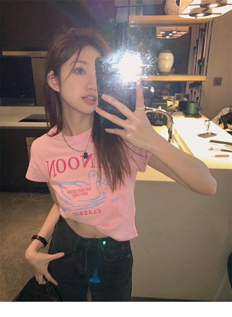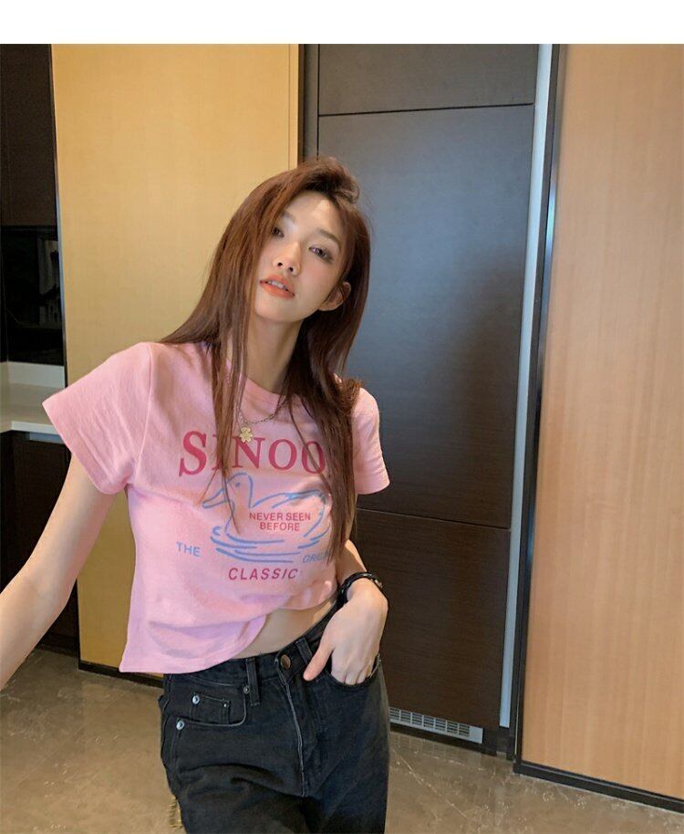 NEWショートTシャツシャツ スプリング夏服ゆったりトップス ピンク 春物 夏物 MONROE23540417772