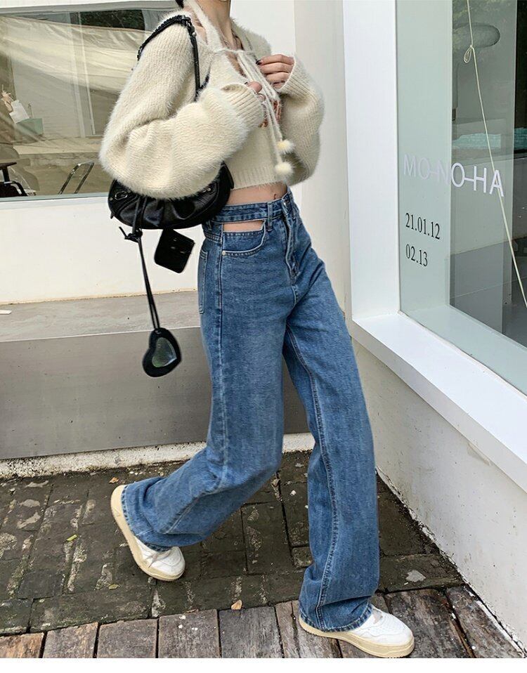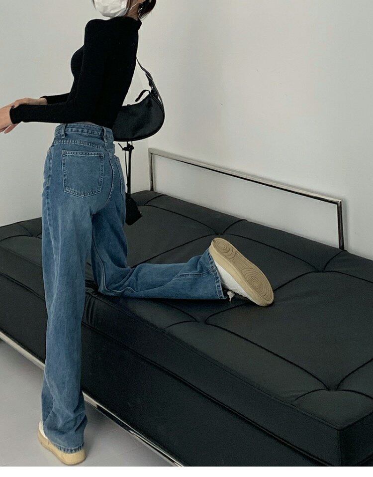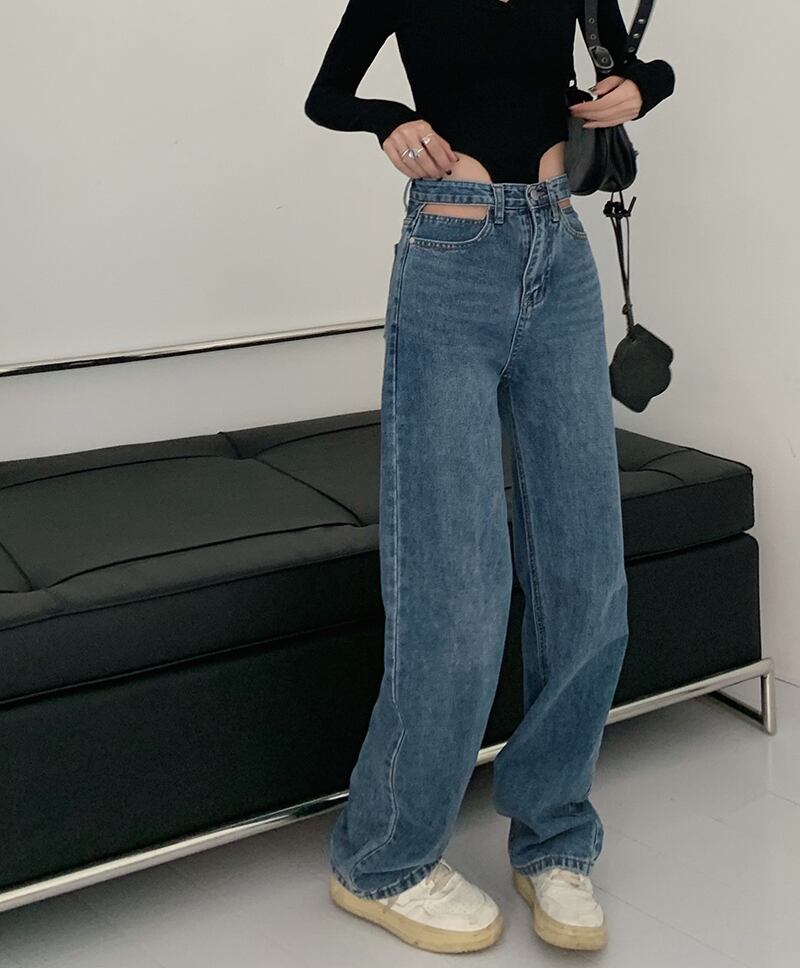 スタンダードブルーウェストジーンズ スプリング薄手ワイドレッグパンツ レトロ 春物 ワイドパンツ ウエスト MONROE55813350045