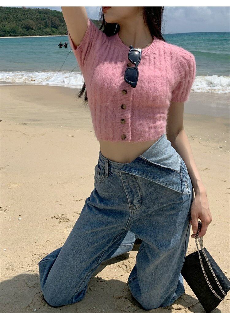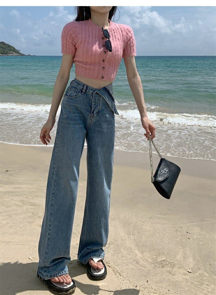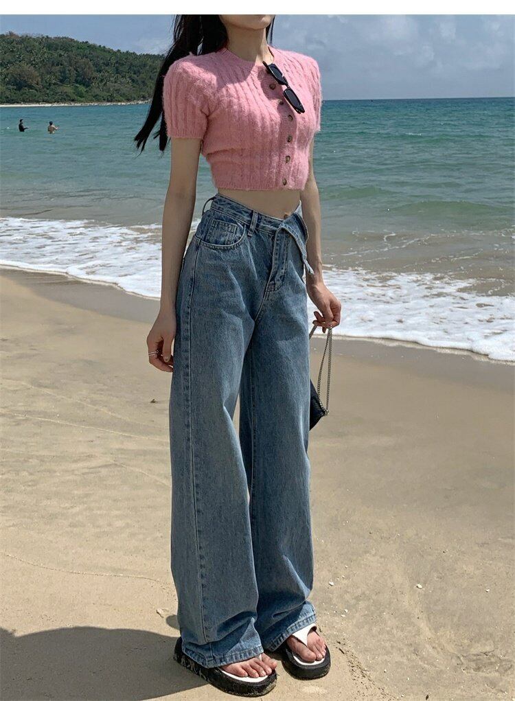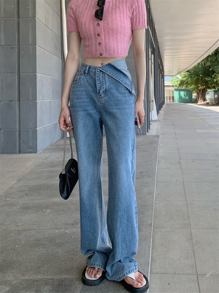 ルーズジーンズ スタンダードブルーウェストスプリングワイドレッグパンツ レトロ 春物 ワイドパンツ ウエスト MONROE31069481666
