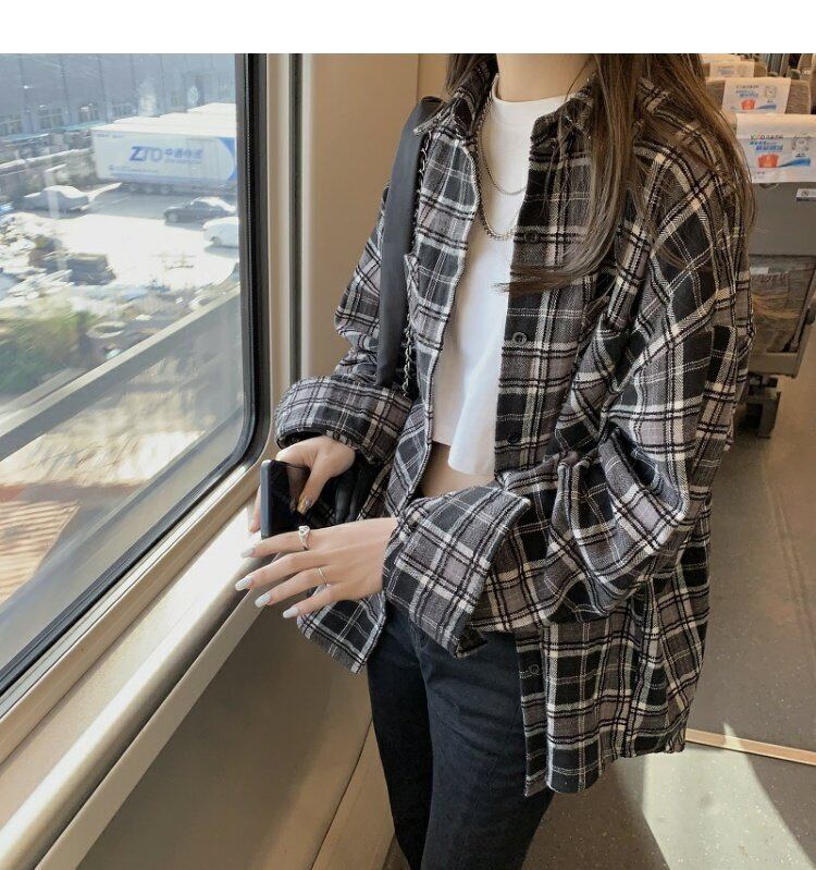 スタンダード格子柄シャツ スプリング薄手ルーズコート レトロ 春物 MONROE39156740921
