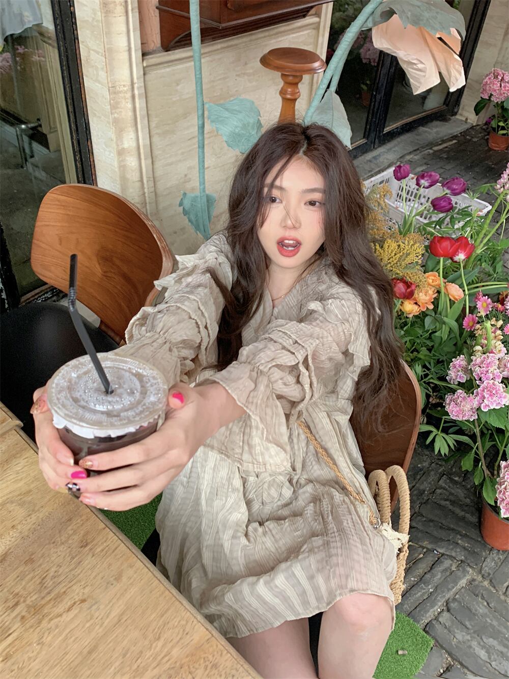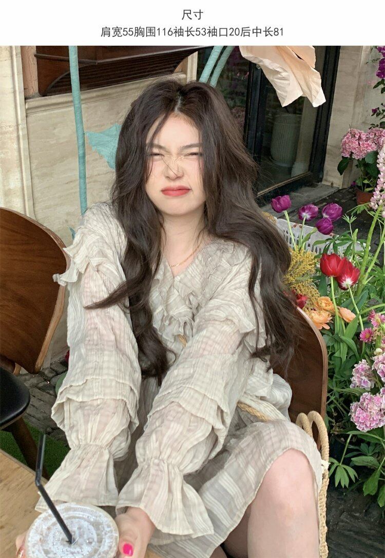 スプリング夏服ワンピースルーズ薄手ショートスカート 韓国ファッション ロング 春物 夏物 スタイル 長袖 MONROE37245790360