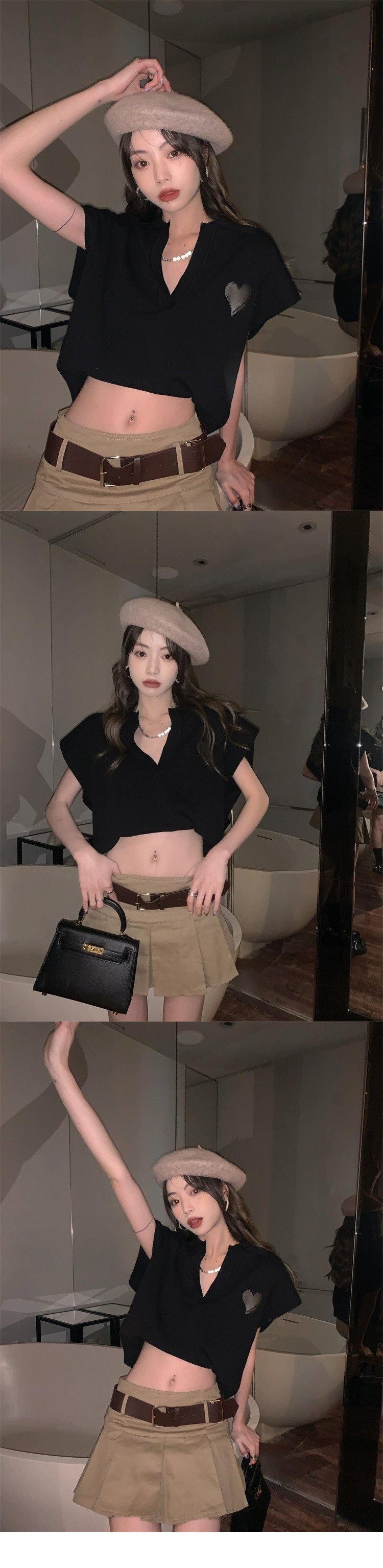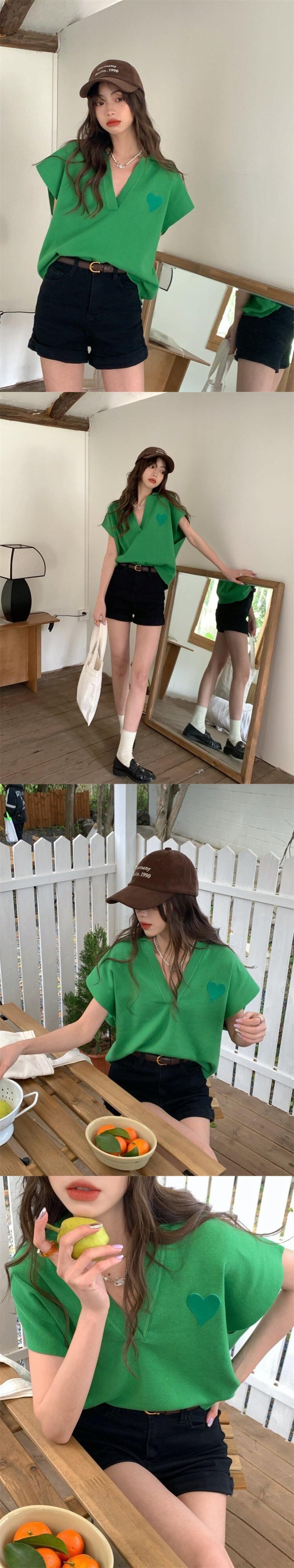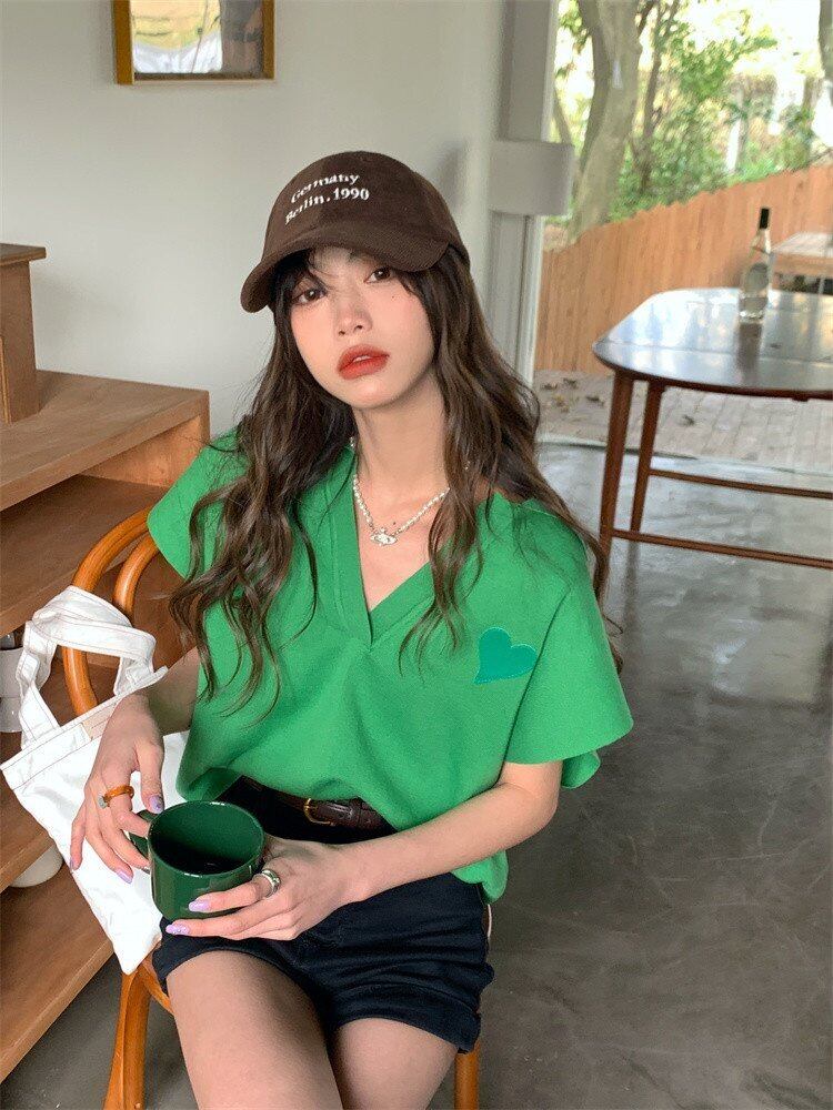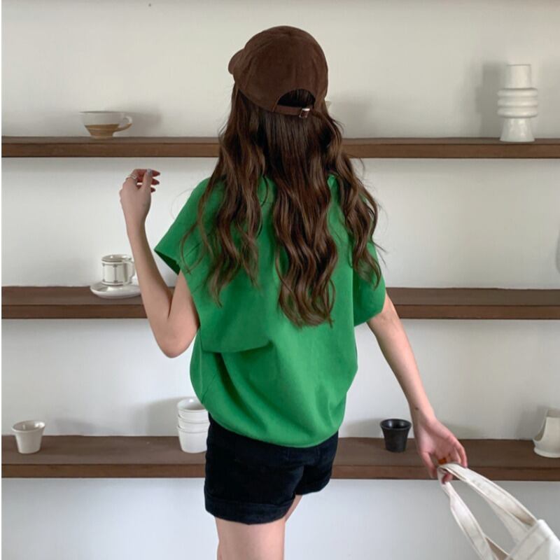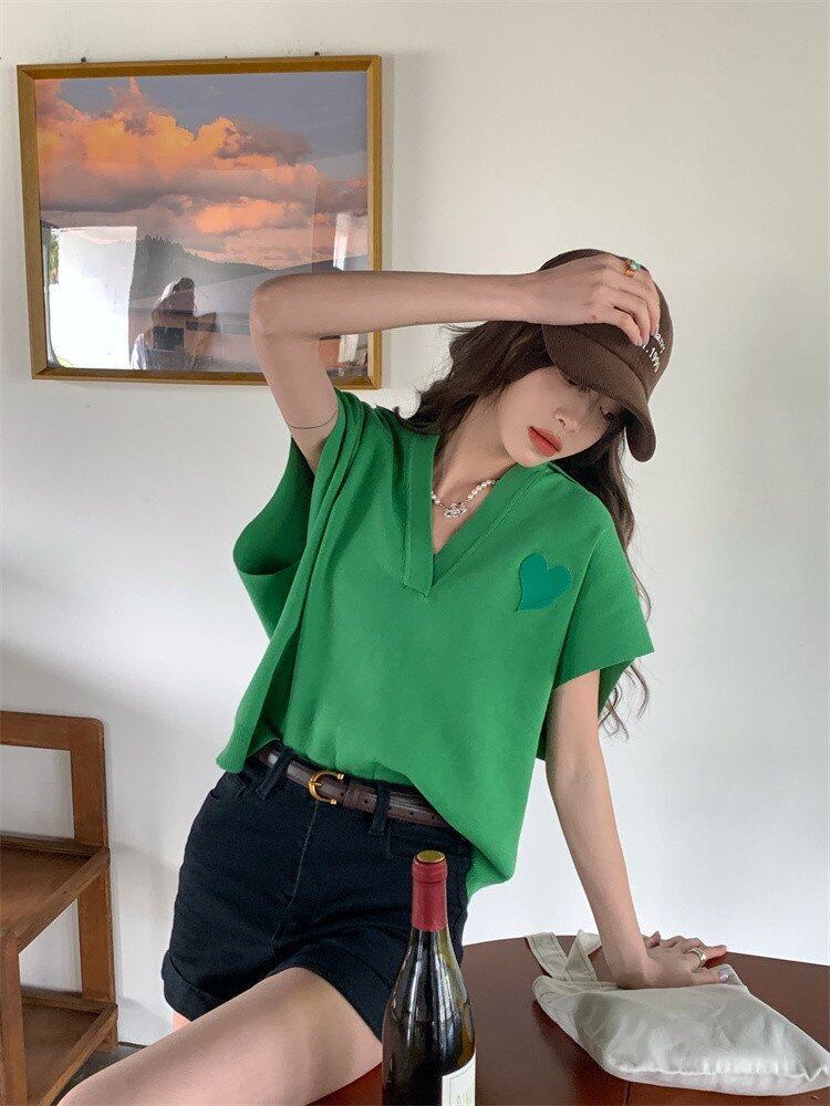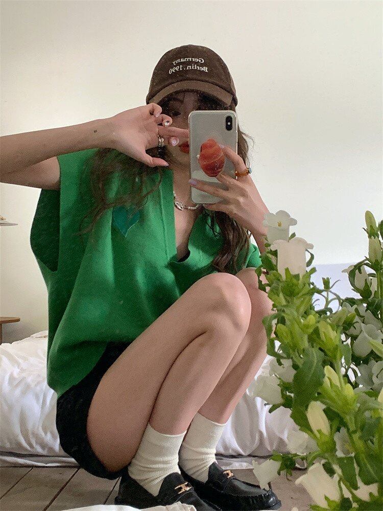 韓国ファッションカジュアルスタンダードグレーセーター 夏服Vネックルーズゆったりシャツ トップス レトロ 夏物 スタイル MONROE67179670286