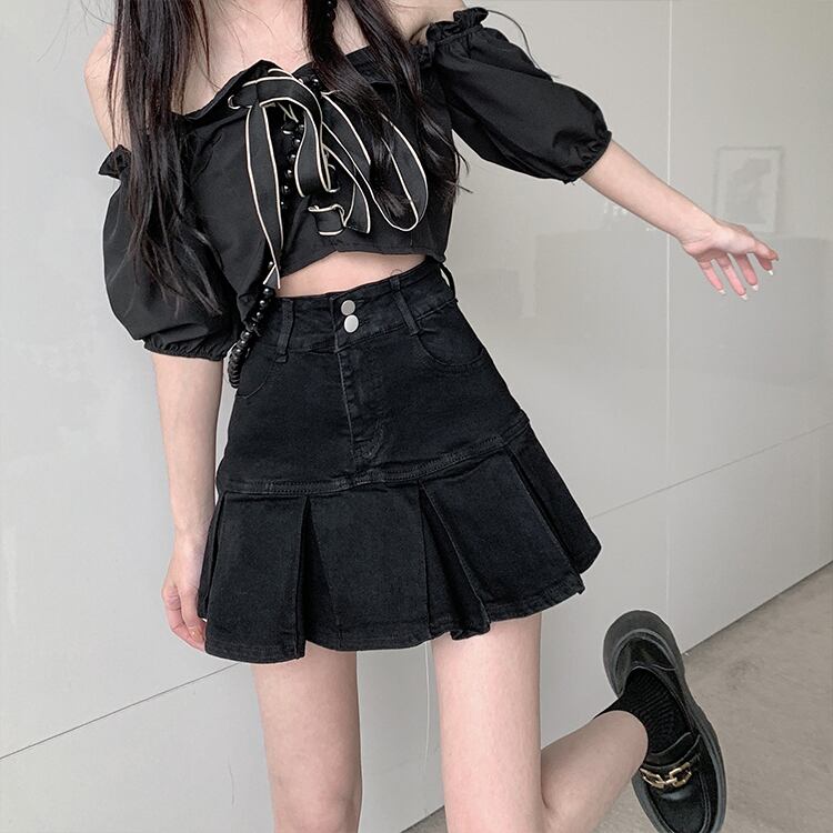 スタンダードスカート 夏服ウェストスリムショートプリーツAライン レトロ 夏物 ウエスト MONROE69033522916